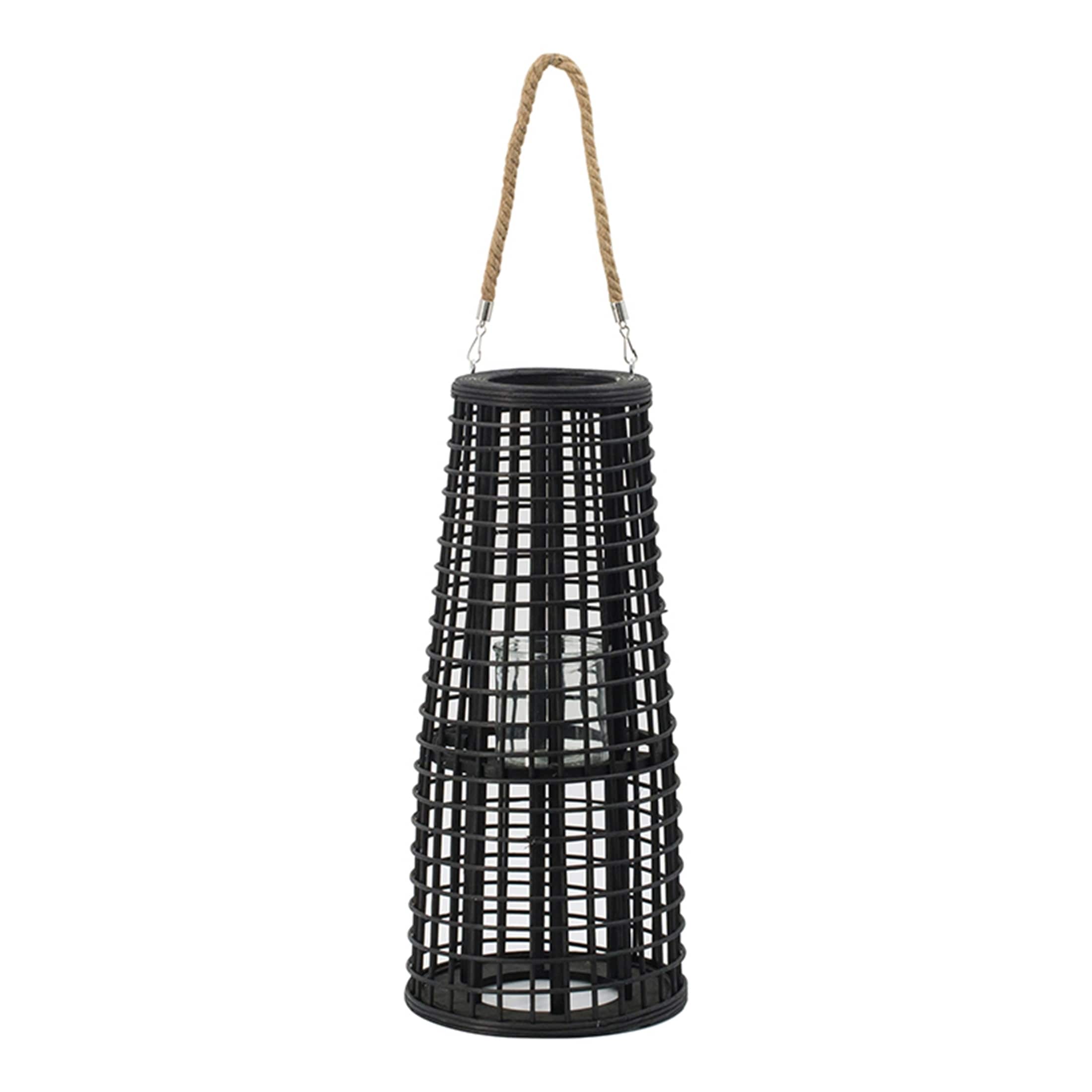 Woven Rattan Hurricane Lantern with Hemp Rope