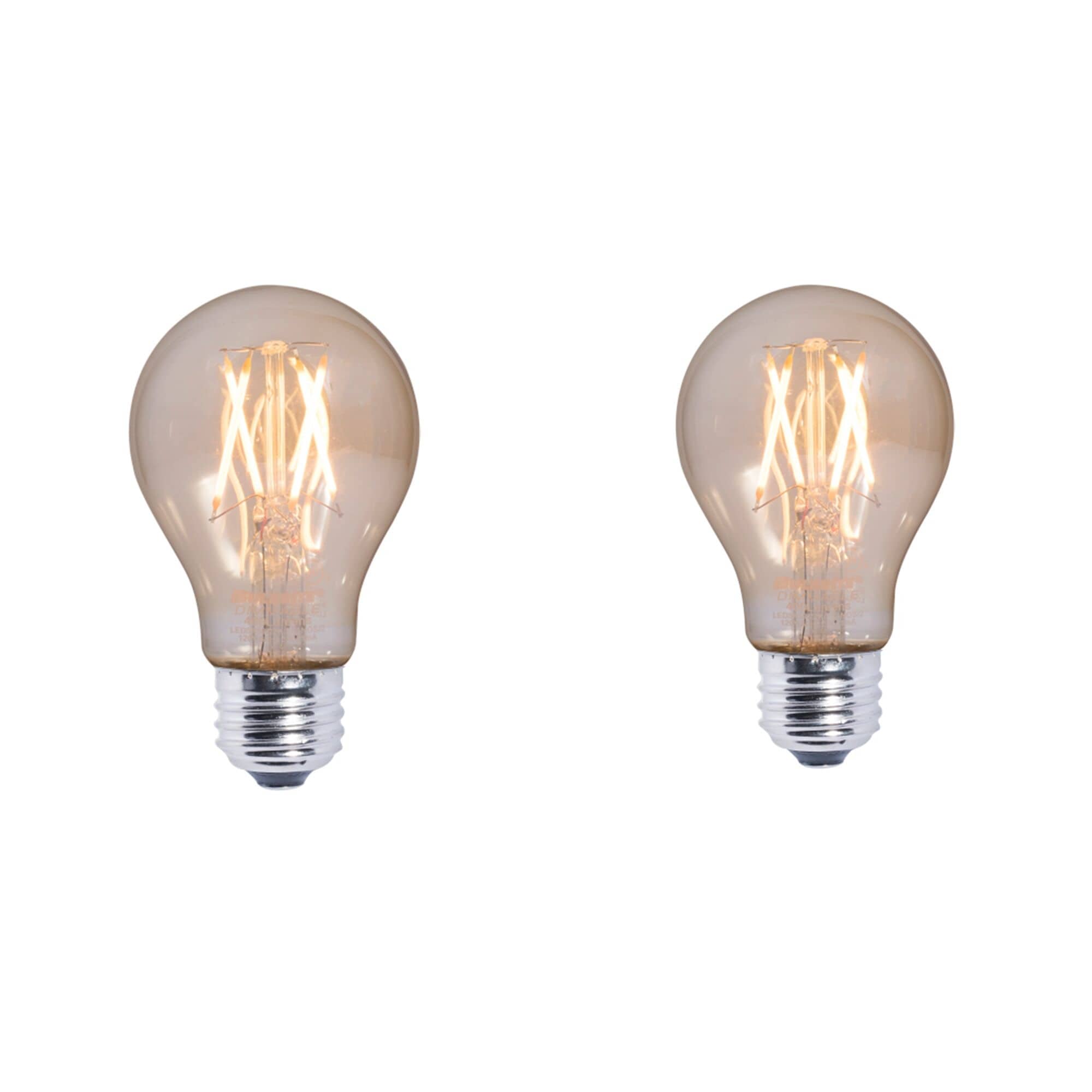 Bulbrite Pack of (2) 4.5 Watt Dimmable Antique Filament A19 Medium (E26) LED Bulb - 410 Lumens, 2100K, and 90 CRI - Amber Light
