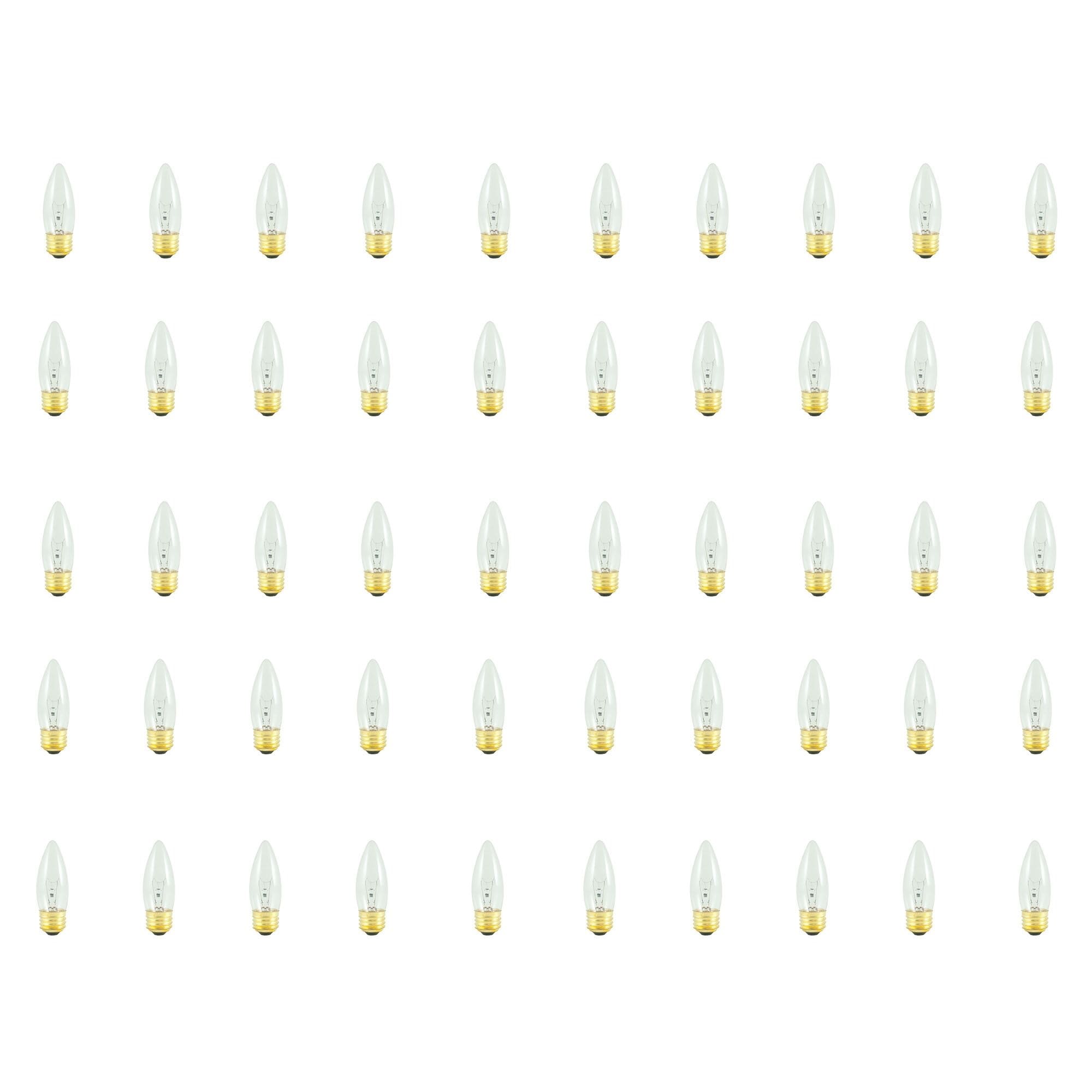 Bulbrite Pack of (50) 40 Watt Dimmable B10 Incandescent Light Bulbs with Clear Finish and Medium (E26) Base - Warm White Light