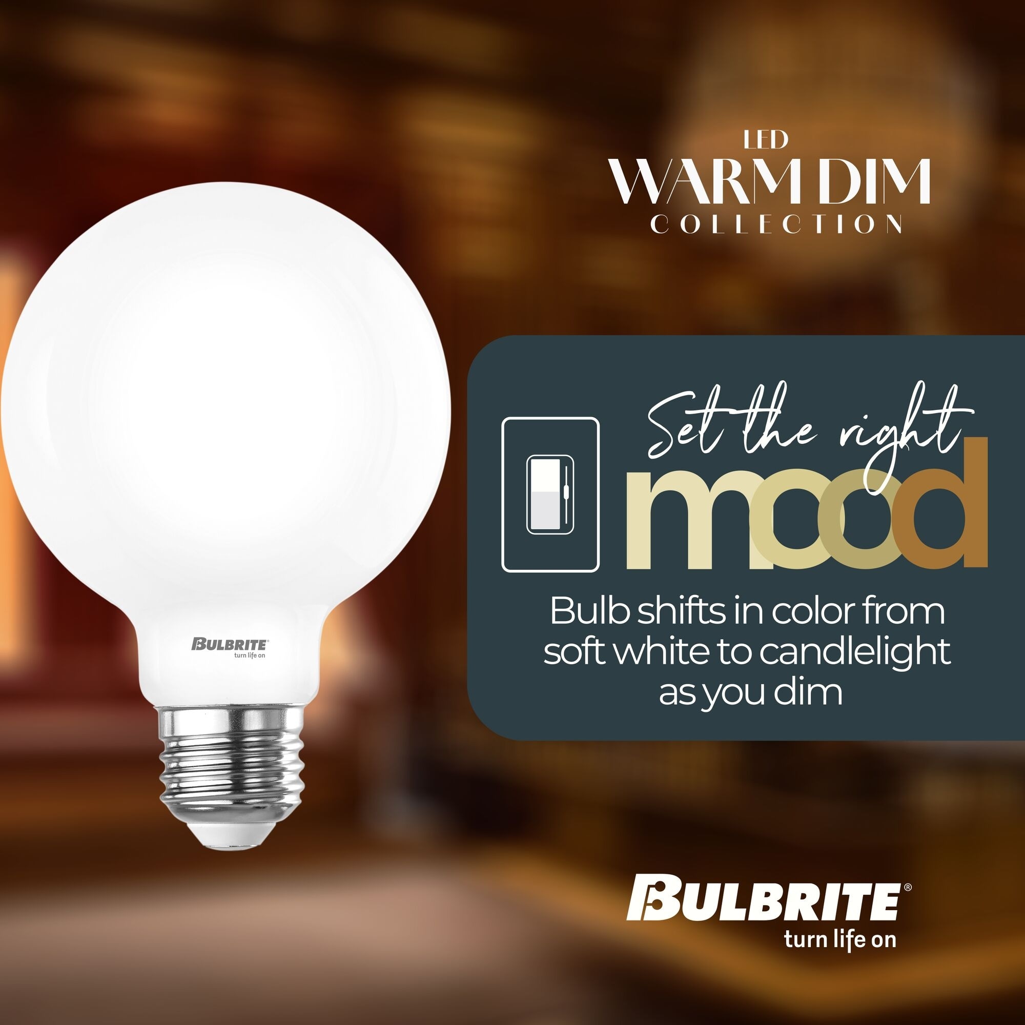 Bulbrite 9 Watt LED G25 Light Bulbs, Warm Dimming 3000K (Soft White) - 1800K (Candlelight), 800 Lumens, (2 Pack) - Pack of 2