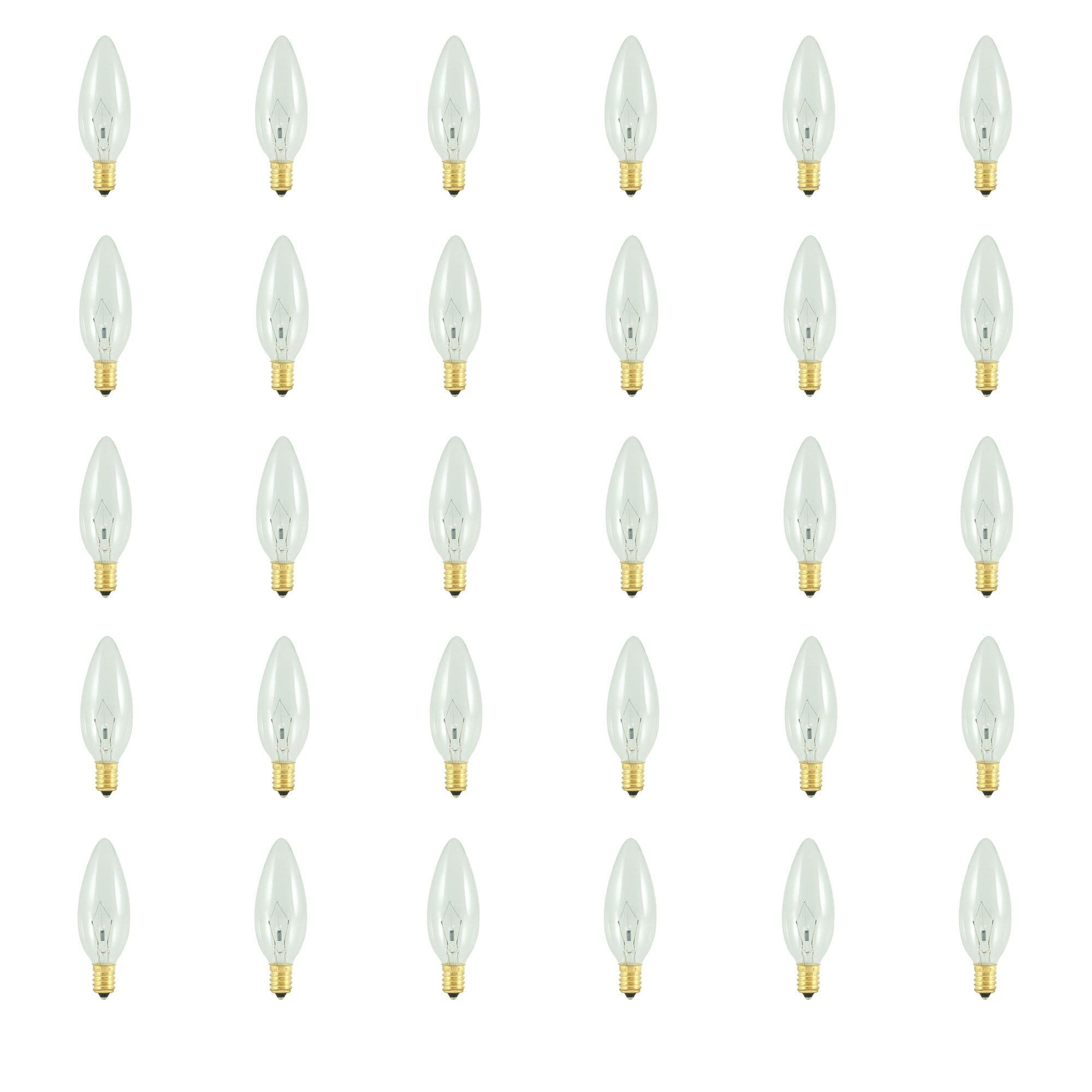 Bulbrite Incandescent Pack of (30) Torpedo B10 Chandelier Light Bulbs with European (E14) Screw Base - Warm White Light