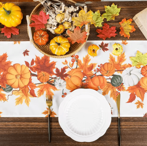 Embroidered Maple Leaf Table Runner Rustic Farmhouse Fall & Thanksgiving Decor 28x43cm
