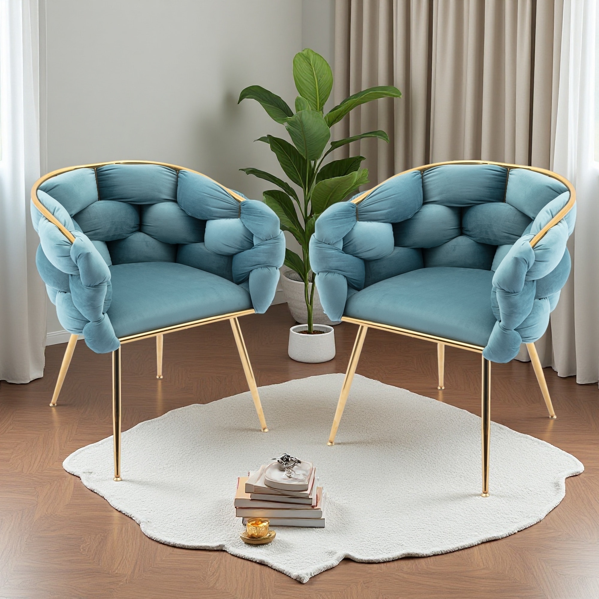 Velvet Accent Chair Set of 2 with Gold Legs & Turquoise Upholstery