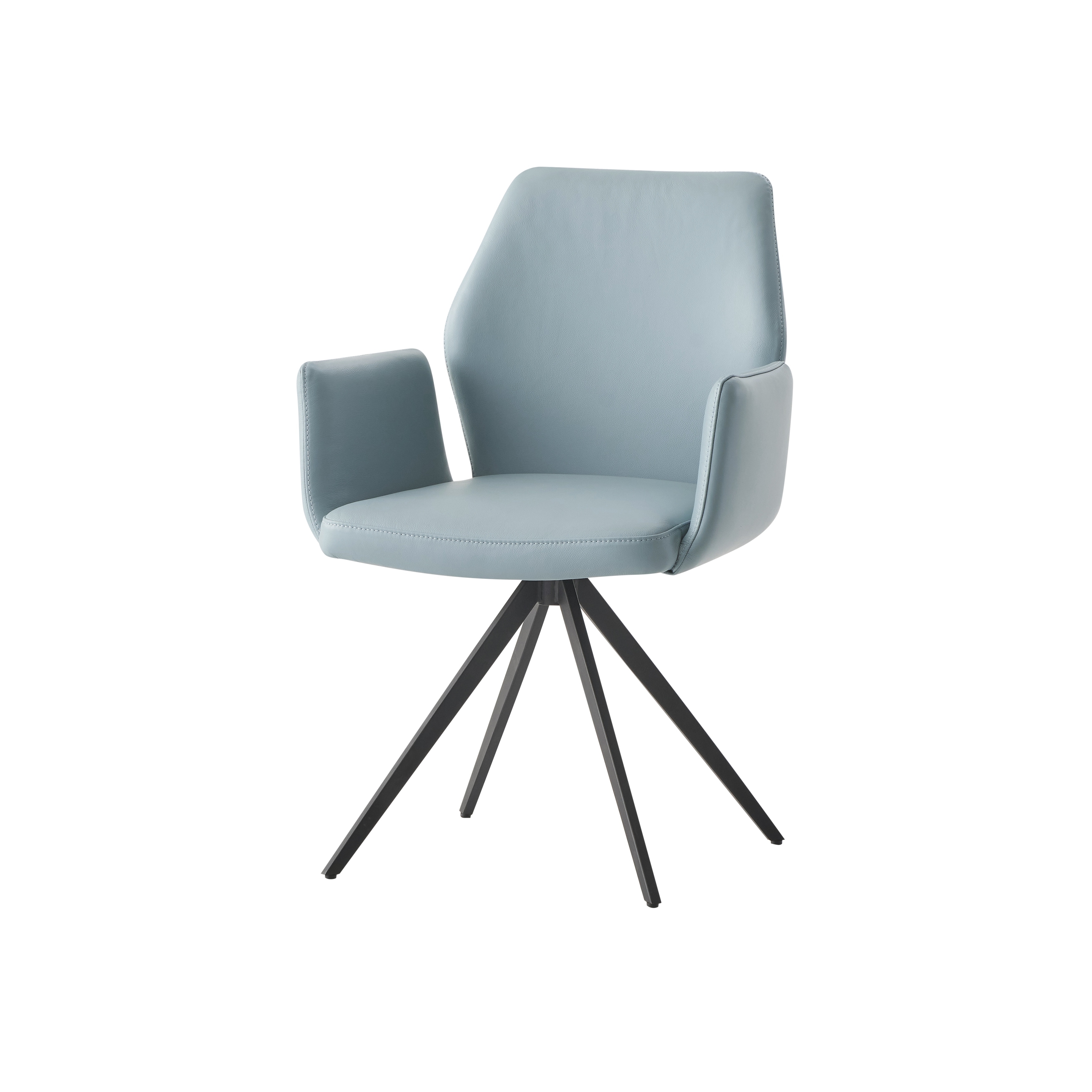 Segismunda Light Blue Leather & Black Finish Arm Chair W/Swivel
