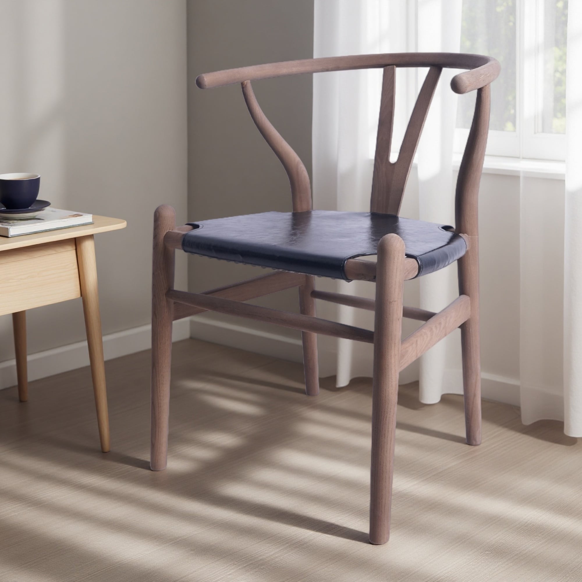 Faux Leather Mid-Century Accent Chair with Ash Wood Frame & Nailhead Accents