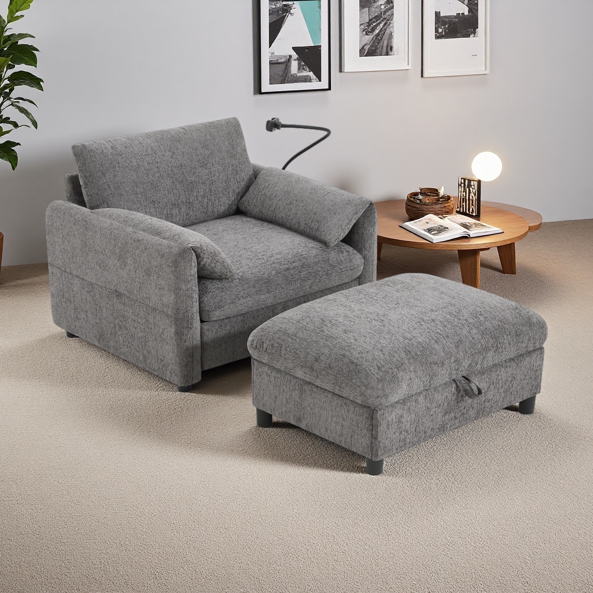 38" Sofa Chair with Storage Ottoman, Wide Seat & USB/Phone Holder