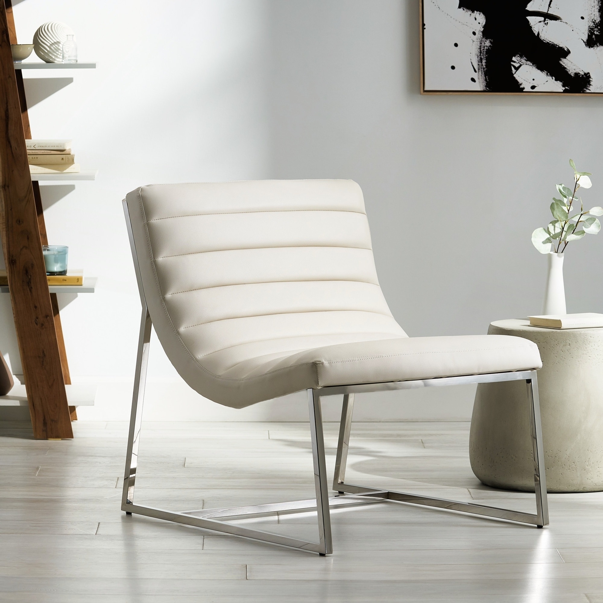 Wilmouth Roll Occasional Chair with White Leather and Chrome Legs for Modern and Contemporary Spaces