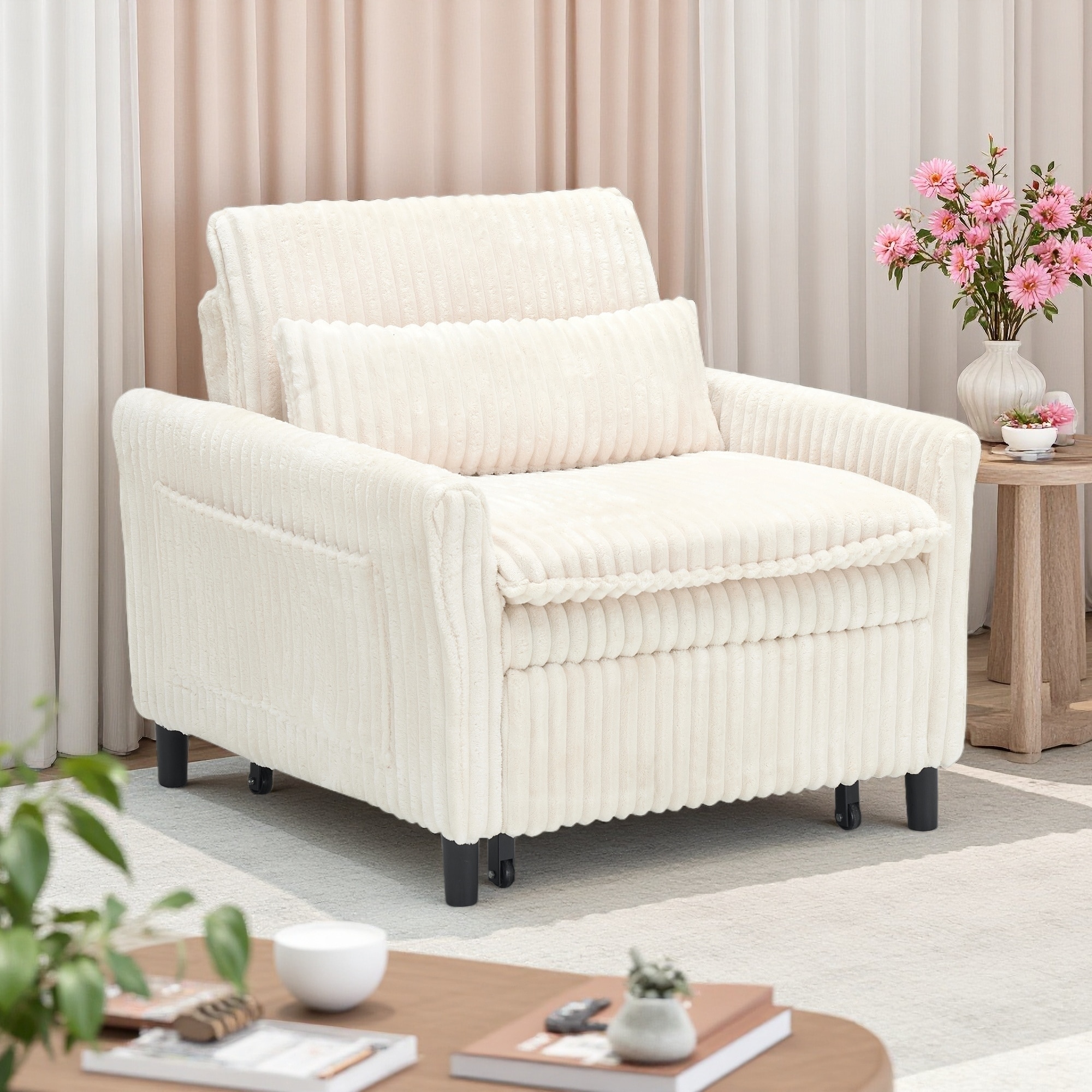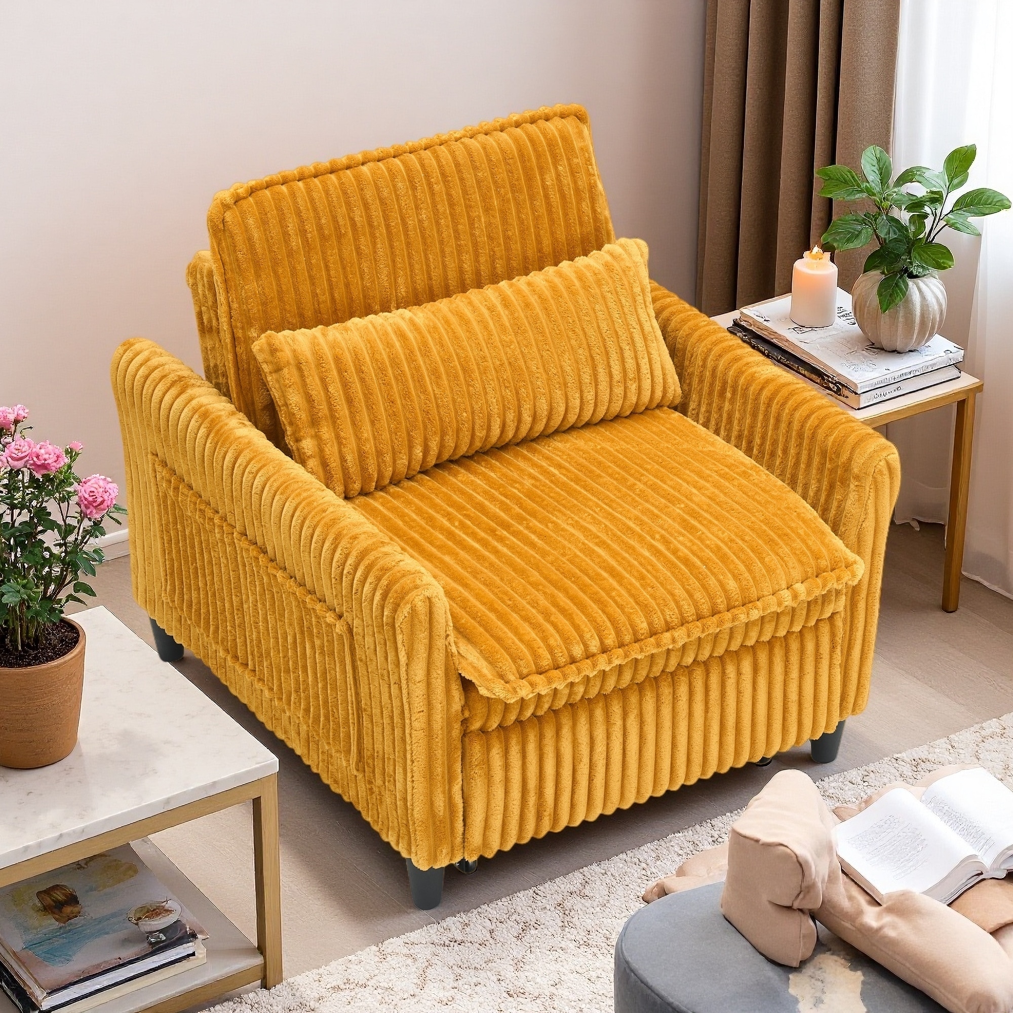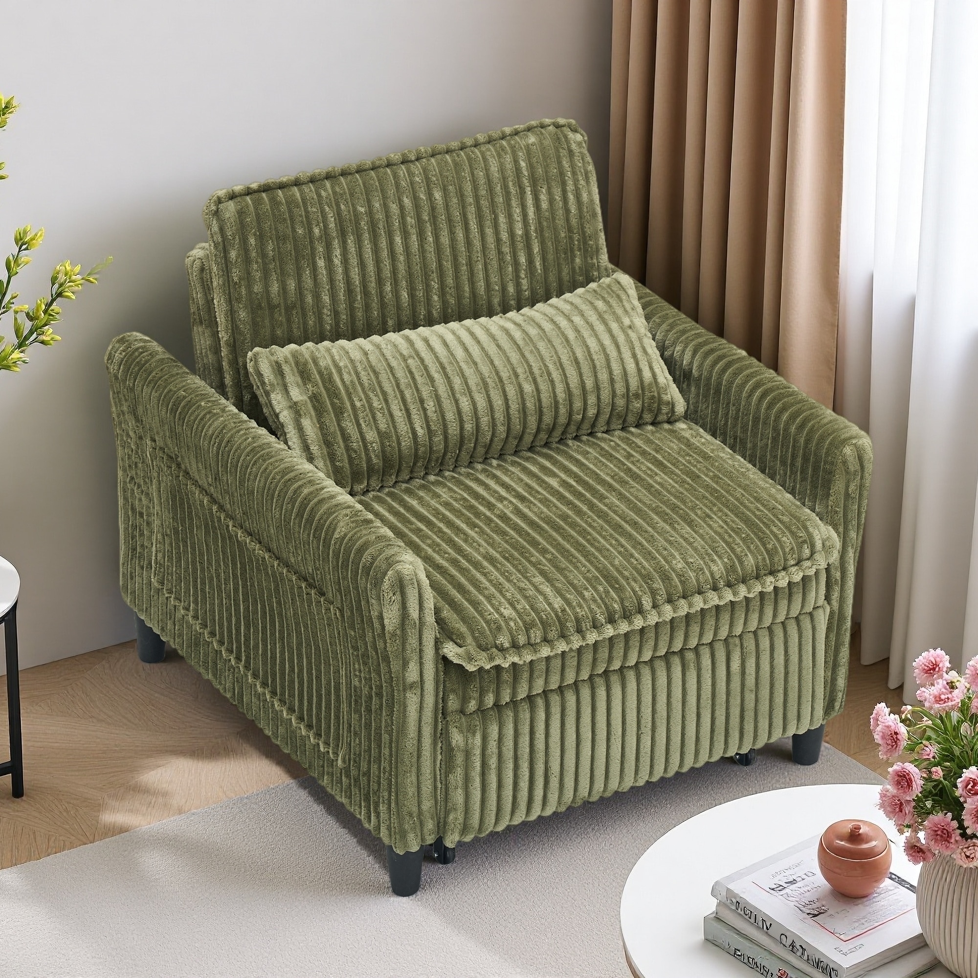 33" Corduroy Small Sofa with Plush Cushion & Pillow, Comfortable Lazy Chair for Apartment or Balcony