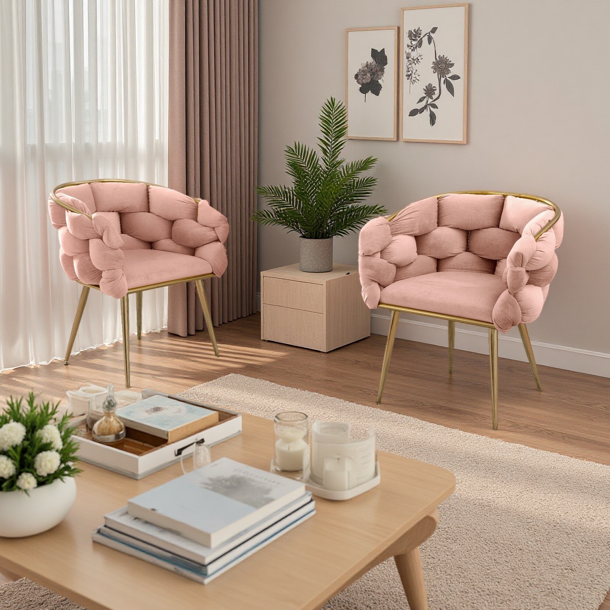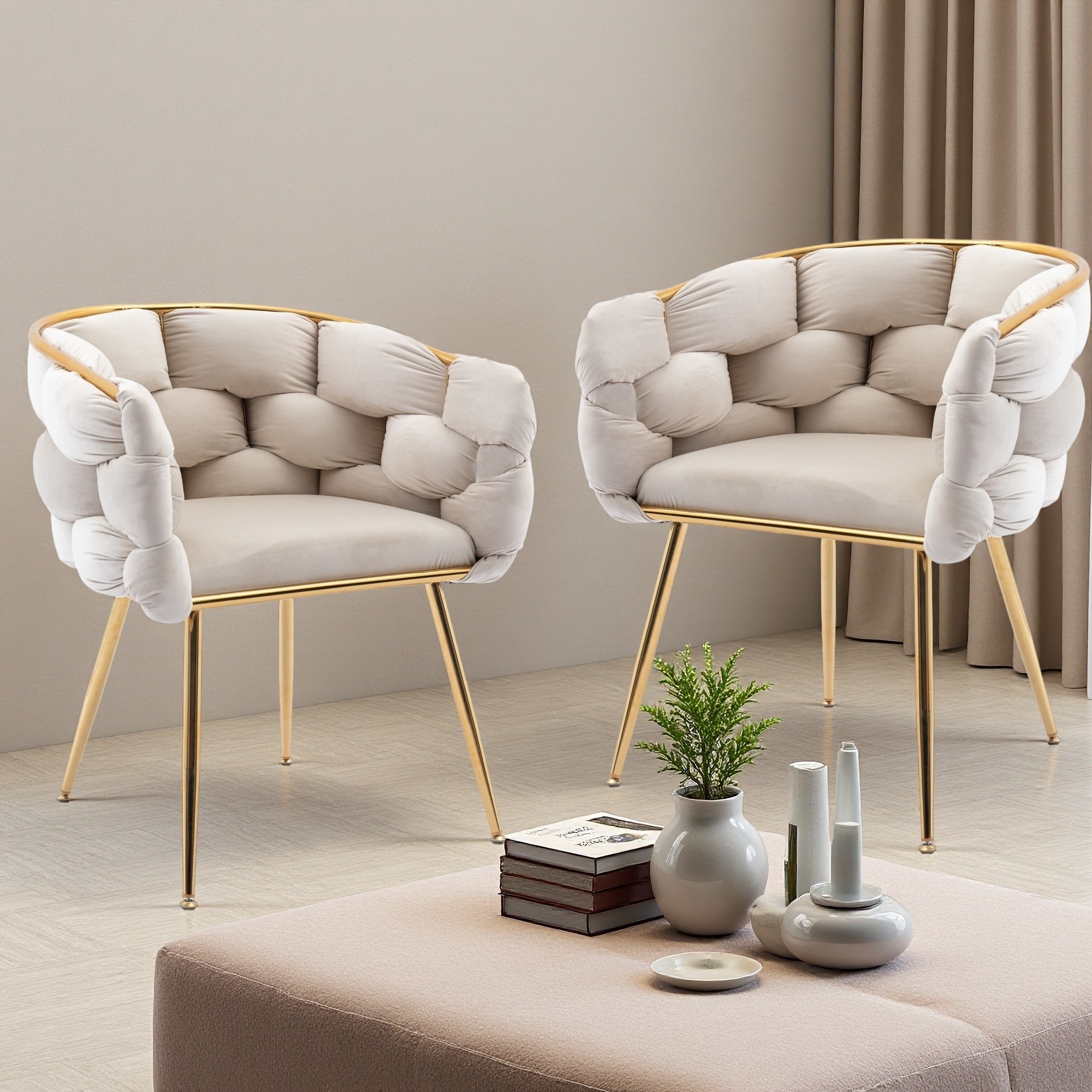 Velvet Accent Chair Set of 2 with Gold Metal Legs, Turquoise Upholstery for Vanity/Bedroom