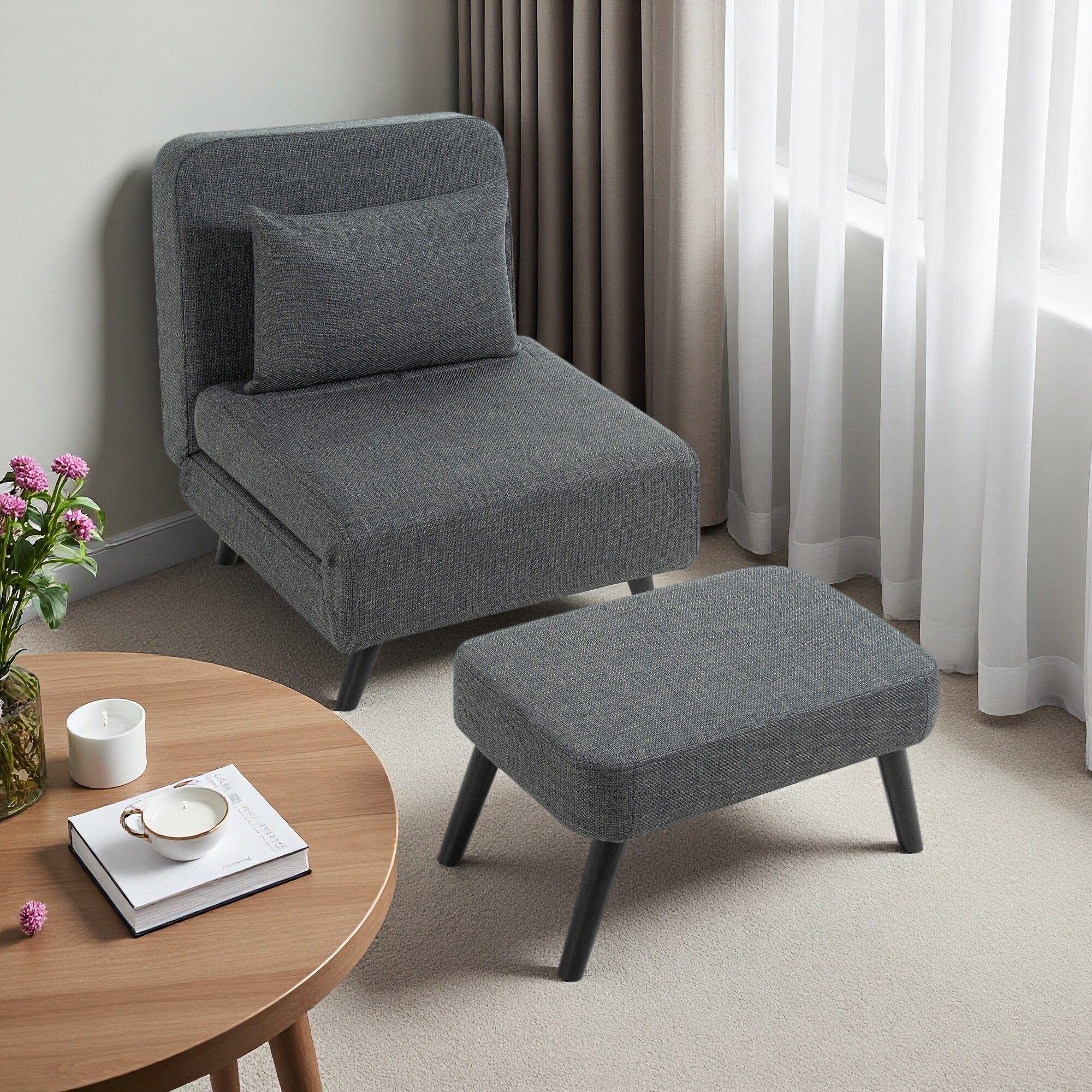 Linen 3-in-1 Foldable Chaise Lounge with Adjustable Backrest, Footrest & Detachable Pillow, Chair Bed