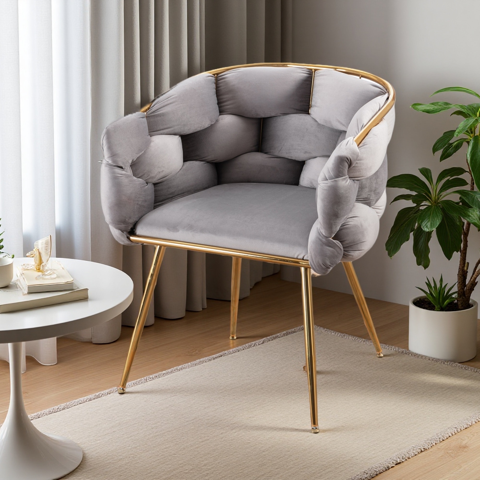 Accent Rivet Tufted Polyester Armchair, Cream, Comfortable and Stylish Seating for Modern Interiors