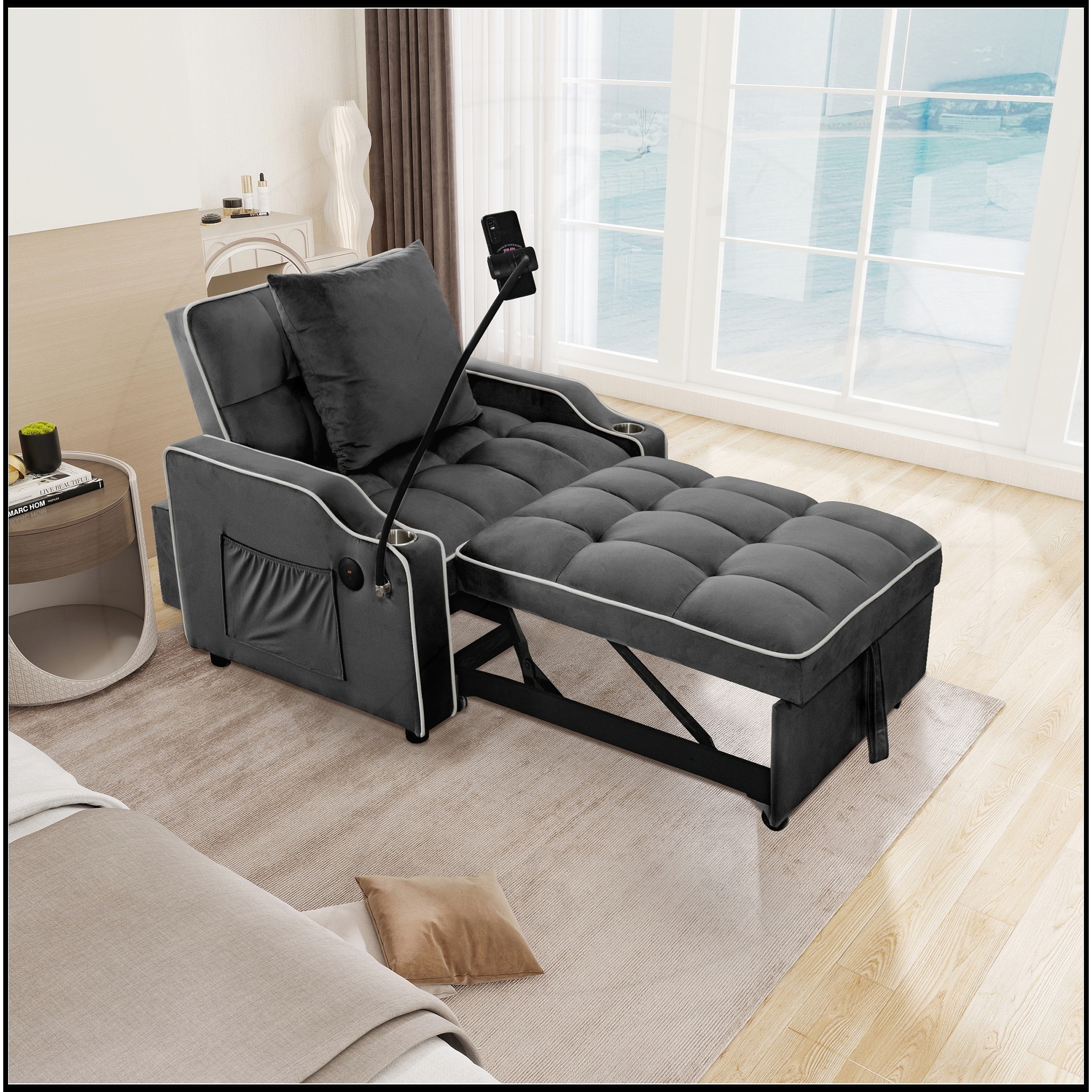 Corduroy Lazy Chaise Lounge Upholstered Sleeper Chair Bed Daybed