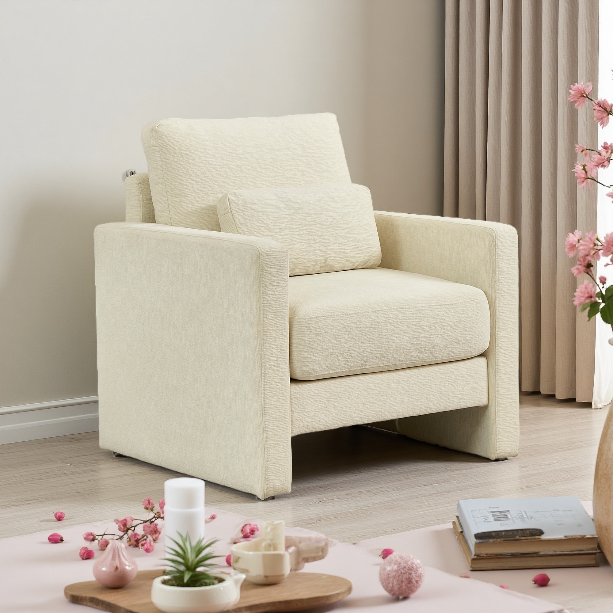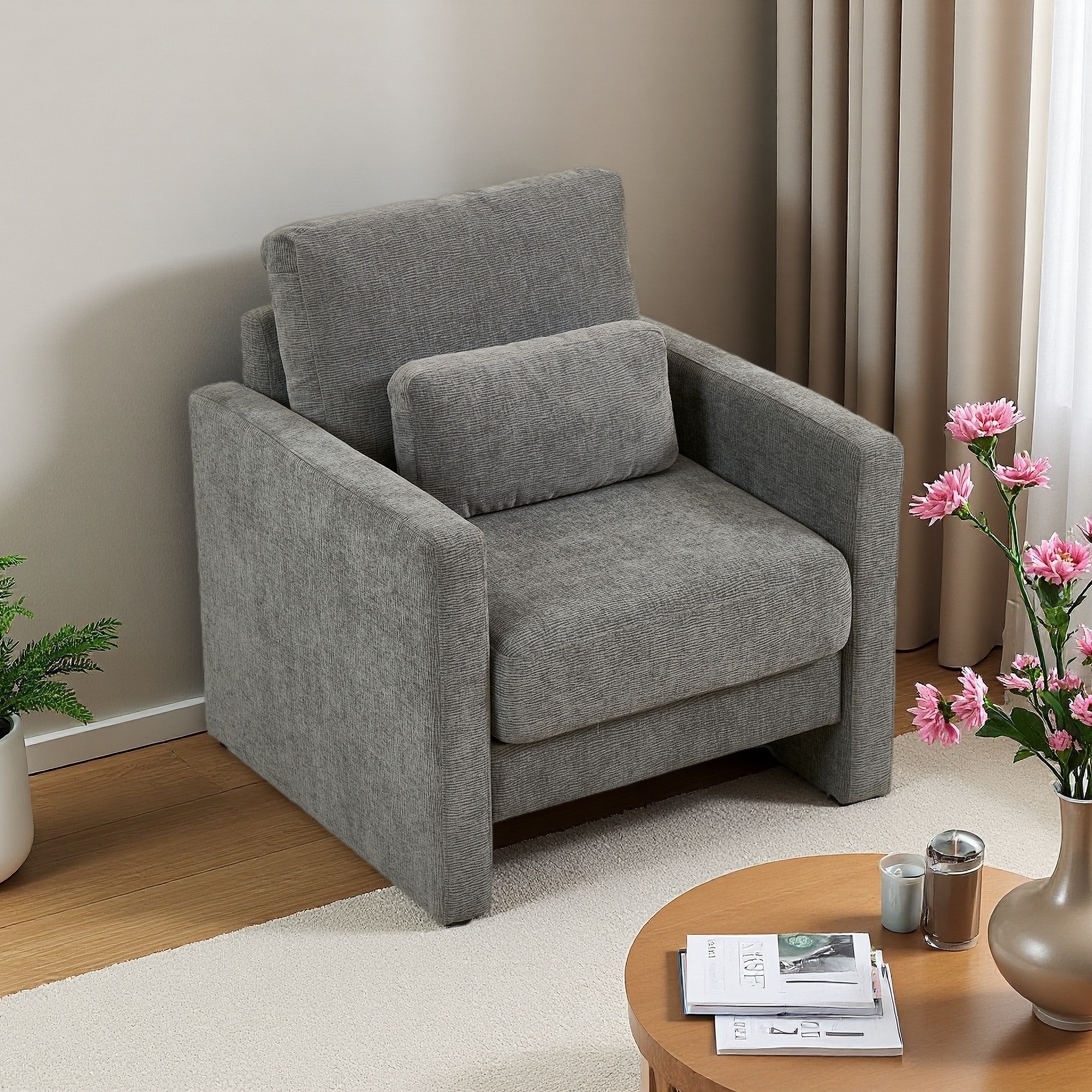 Chenille Accent Armchair with Wood Frame, Thick Cushions & Easy Assembly