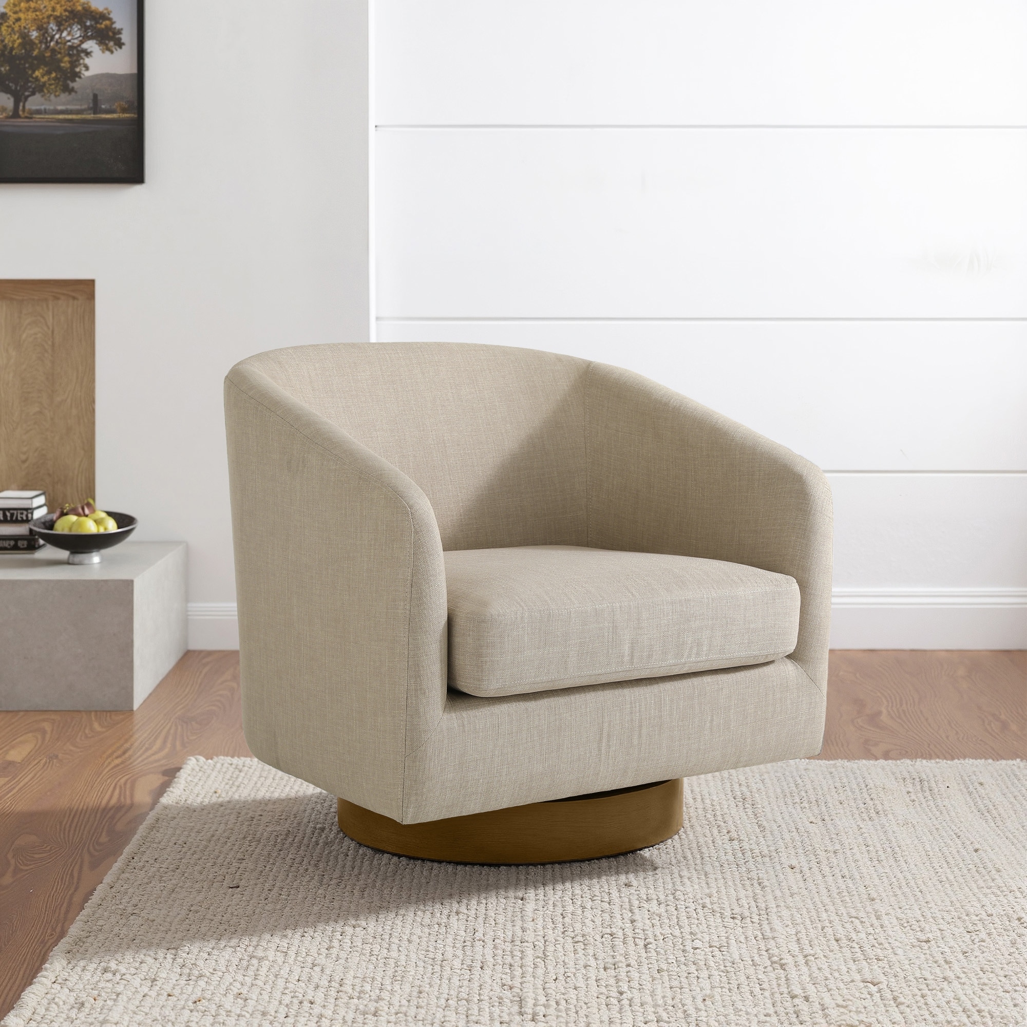 29.1"W Swivel Accent Open Back Barrel Chair Modern Comfy Sofa Chair With Weathered Base