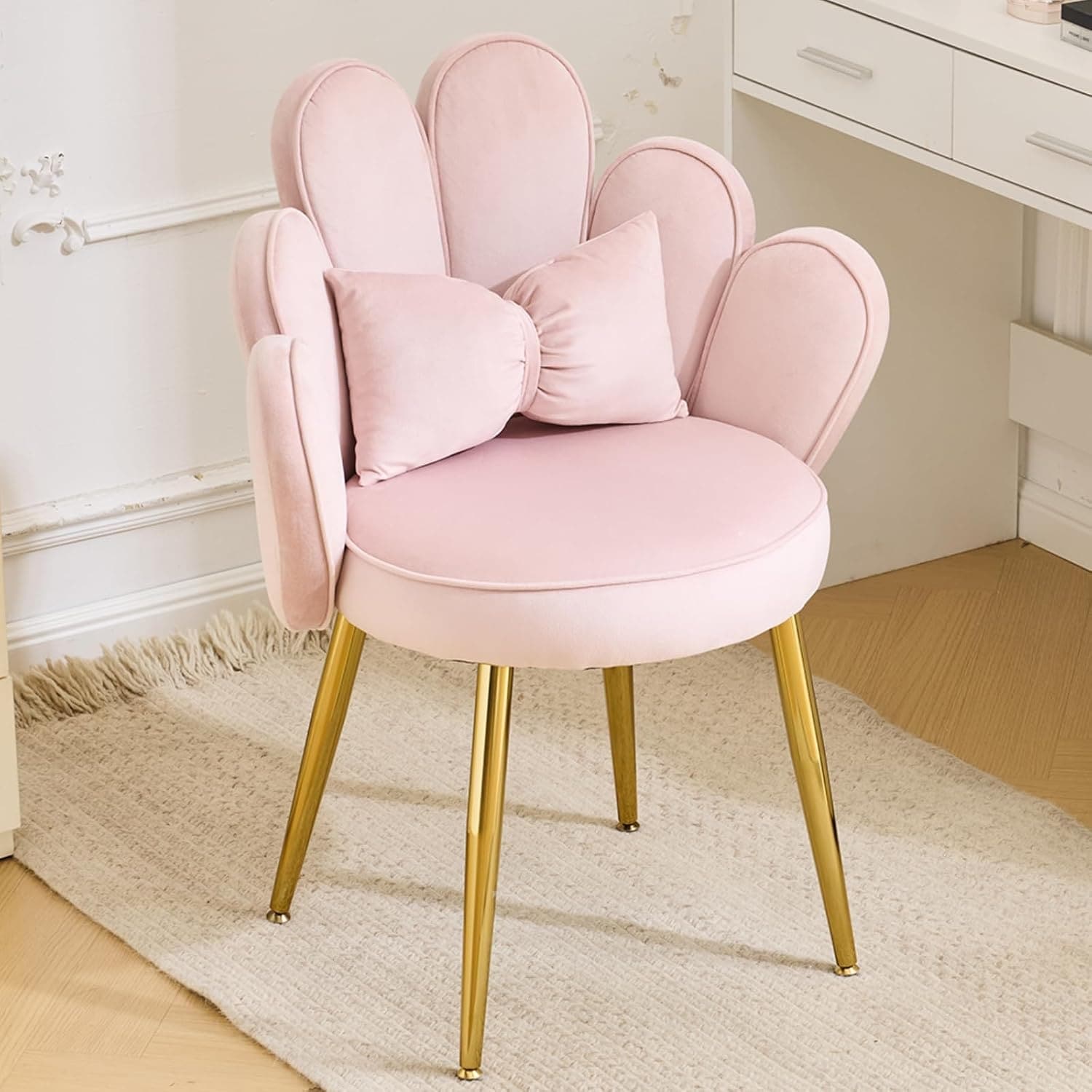 Pink Petal Backrest Armchair with Gold Legs for Living Room, Bedroom, Kitchen and Dining