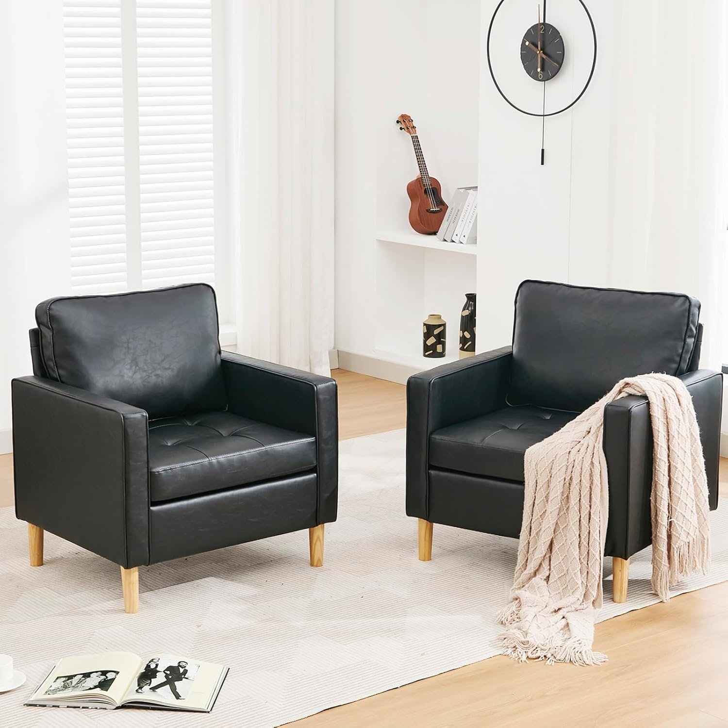 Set of 2 Faux Leather Accent Chairs for Small Spaces, Comfy Reading Sofa, Easy Assembly