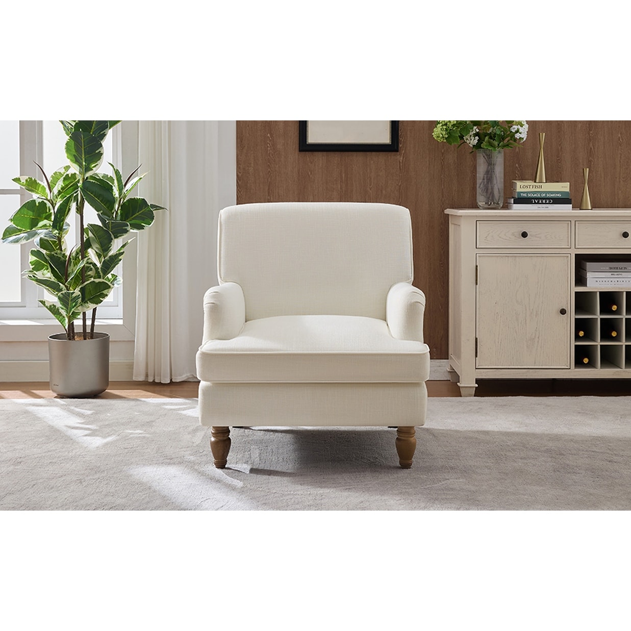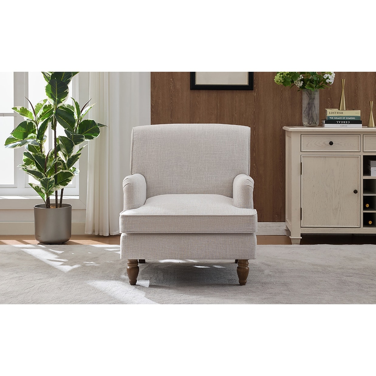 Oversized Upholstered Lounge Chair, Single Sofa Chair with Circular Armrests, Accent Chair with Roman Column Legs