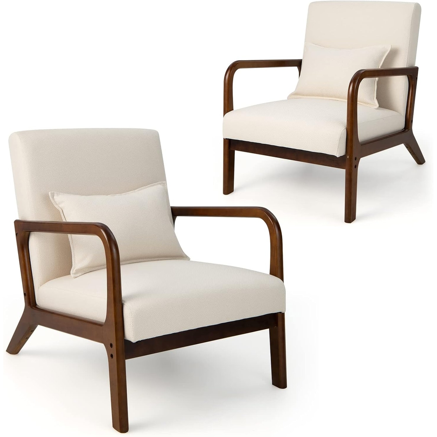 Set of 2 Modern Upholstered Accent Chairs with Pillows - Wooden Frame Lounge Armchairs for Living Room