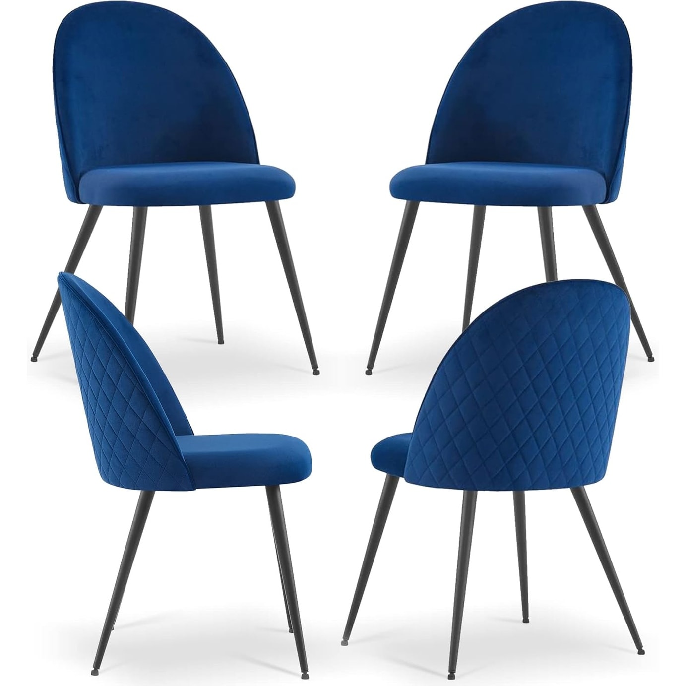 Set of 4 Velvet Upholstered Dining Chairs with Stainless Metal Legs, Simple Design