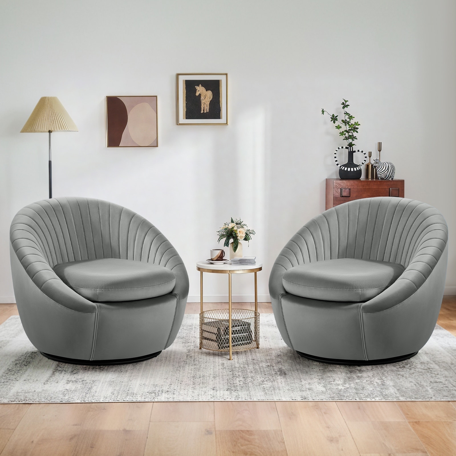 Modern Velvet Shell Swivel Accent Chair with Wide Seat, Upholstered Chair with Metal Swivwl Base