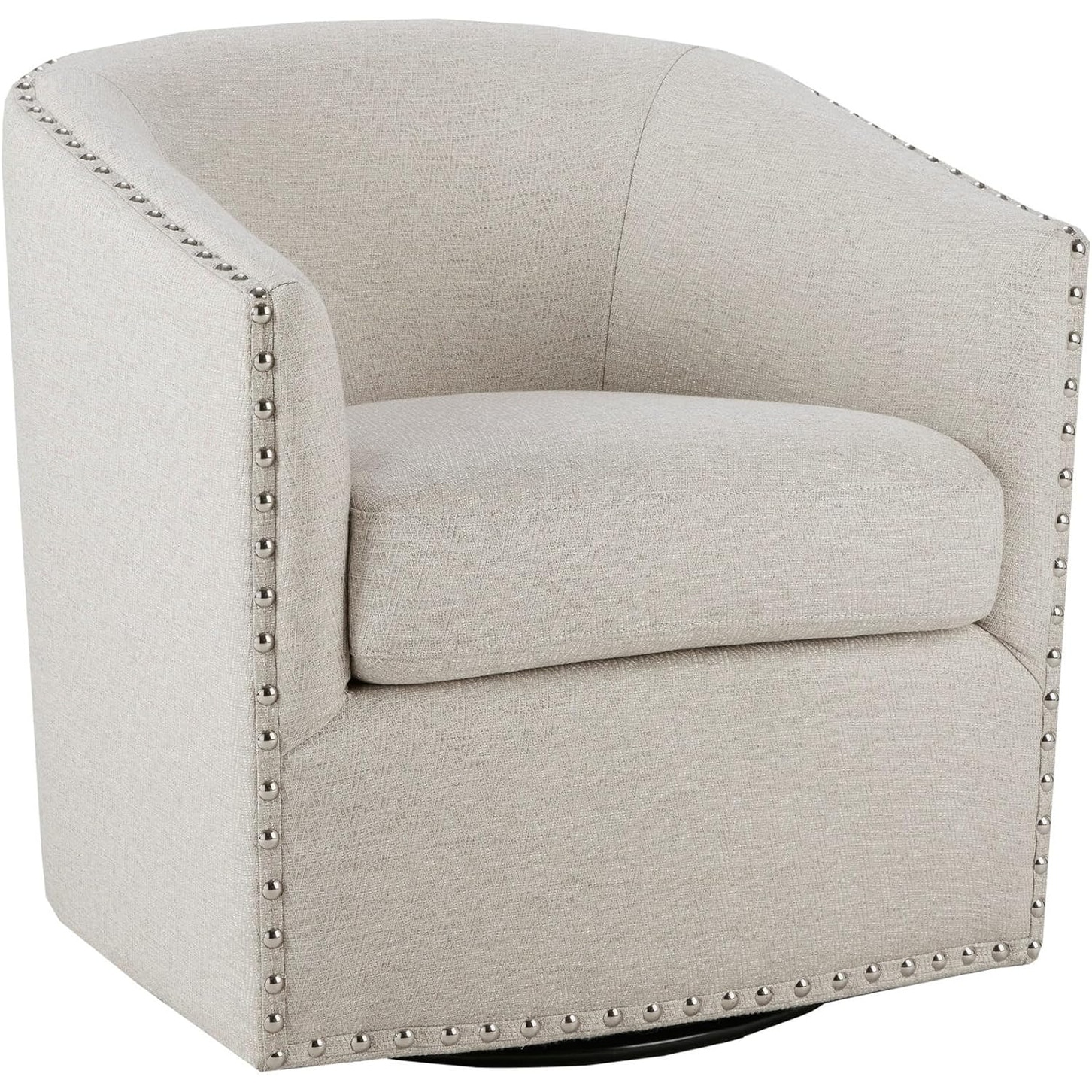 Neutral Swivel Barrel Accent Chair with Curved Back and Thick Woven Cushion, 28-Inch Wide