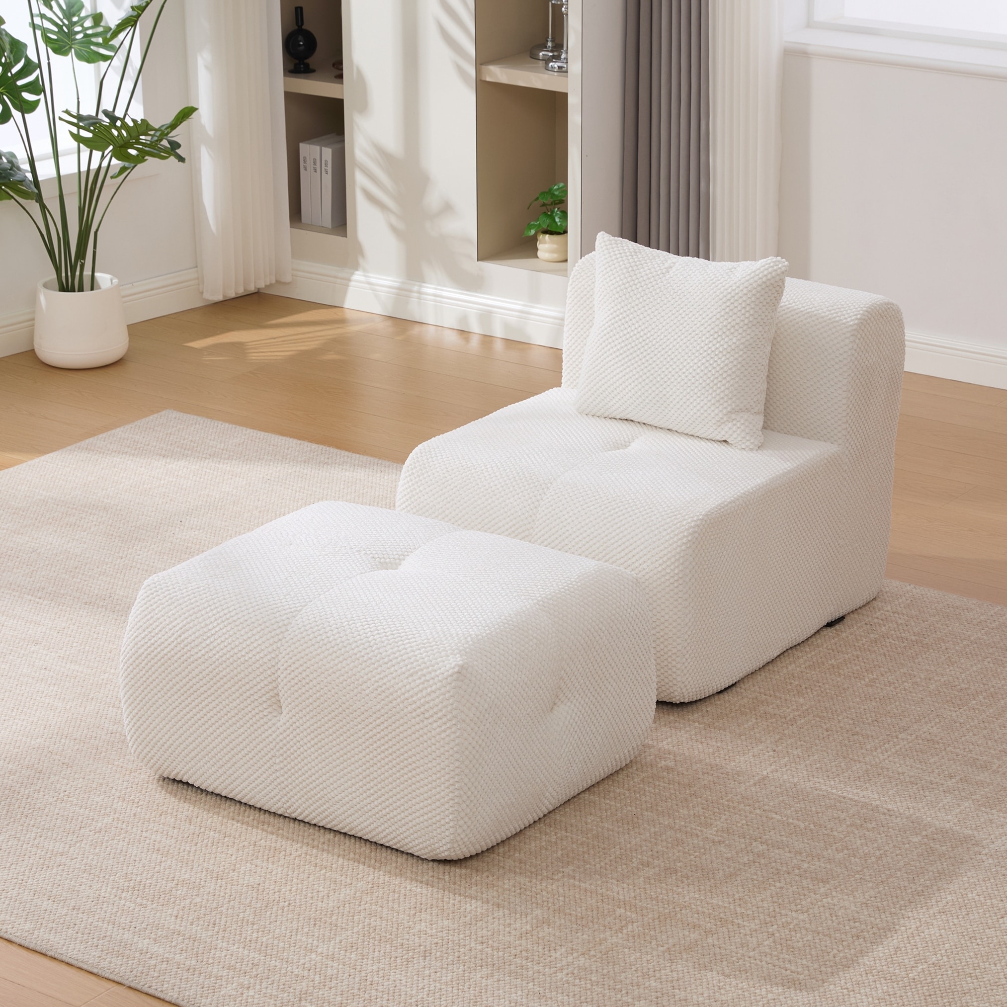 Modular Cloud Armless Accent Chair with Ottoman Set, Modern Boneless Deep Seat Single Sofa Soft Lounger with Footstool