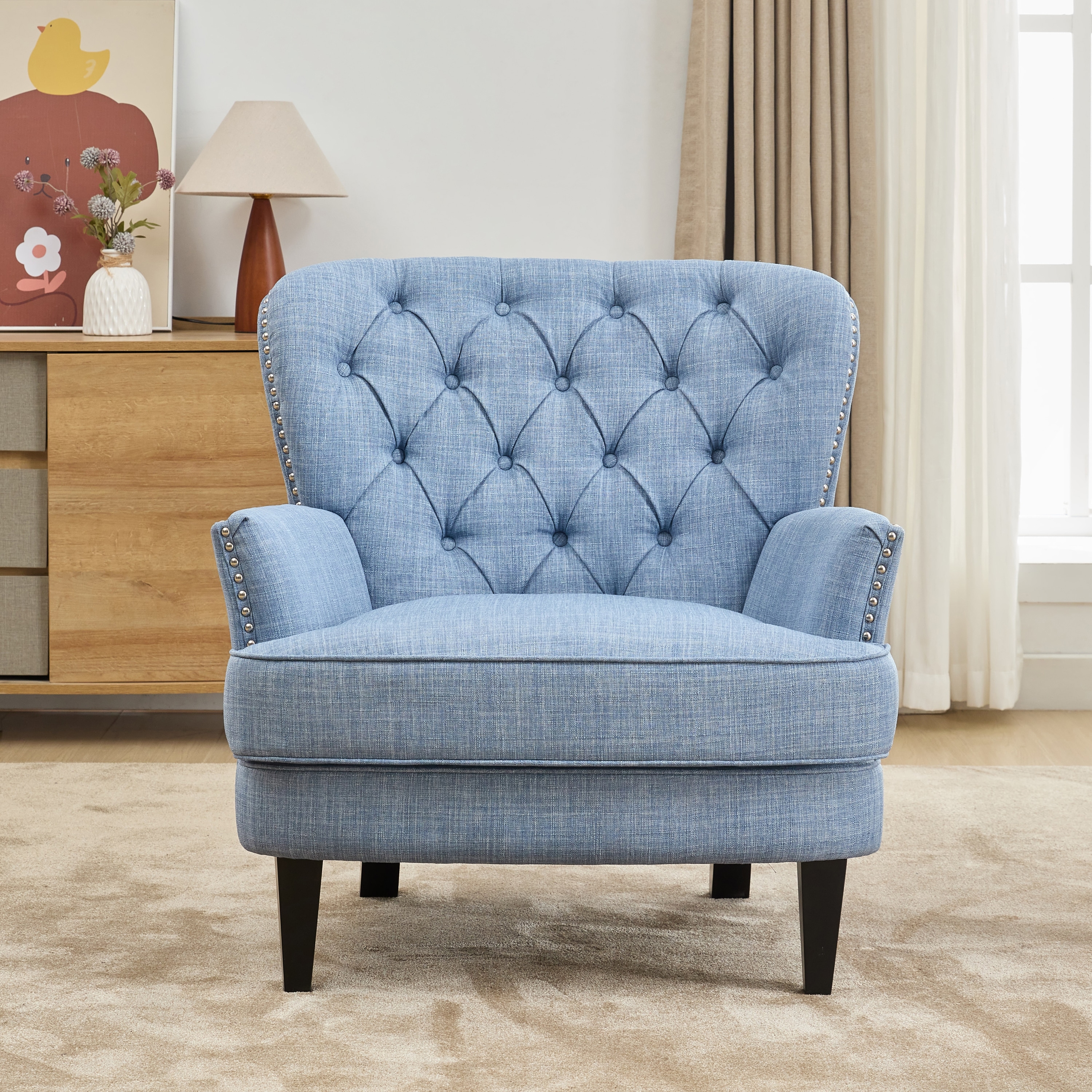 Medieval-Inspired Modern Armchair With High Back Upholstered Chair, Solid Wood Legs, Leisure Reading Chair
