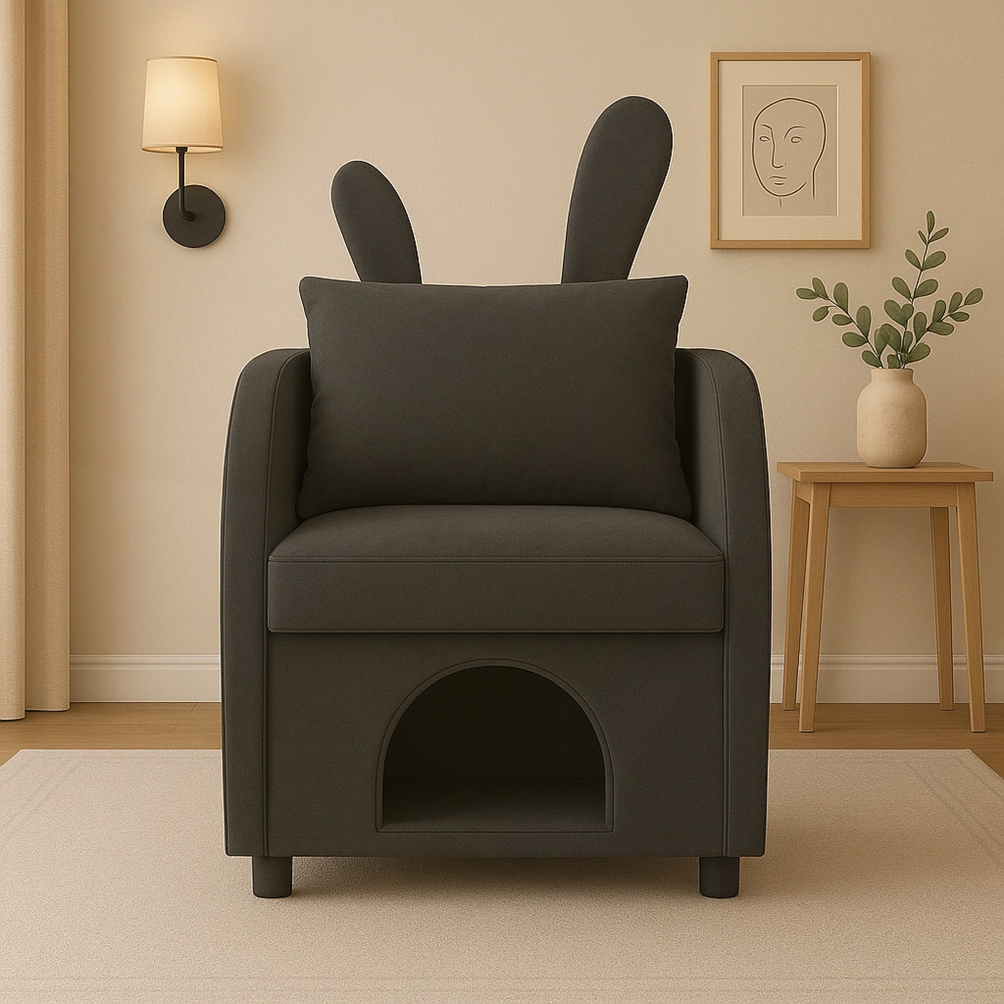 Bunny-Ear Pet-Friendly Armchair with Scratch-Resistant Fabric and Triple-Entry Pet Hideaway Openings