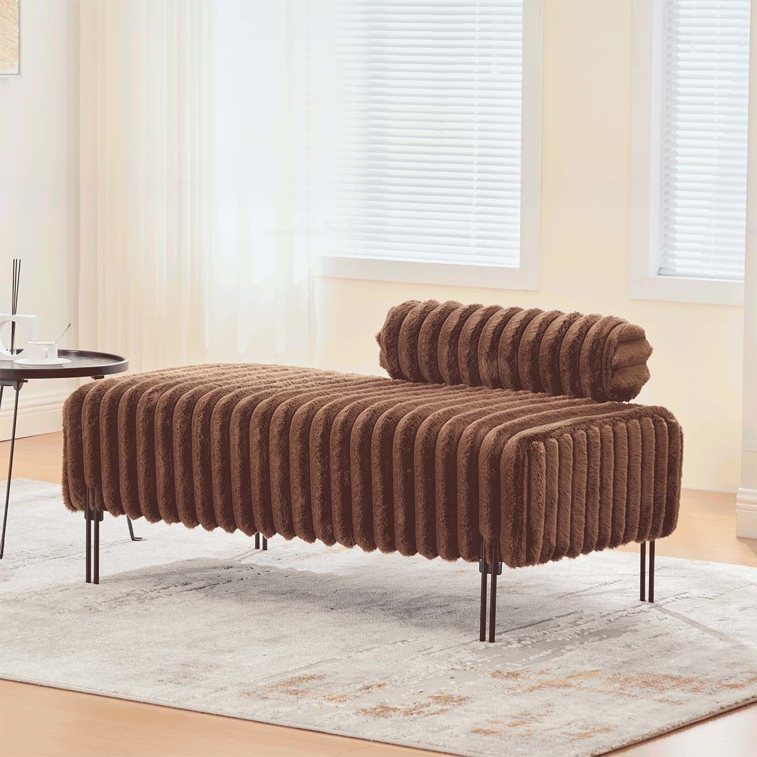 Upholstered Bench with Adjustable Back,Metal Legs,Ideal for Small Spaces and Multi-Use Comfort
