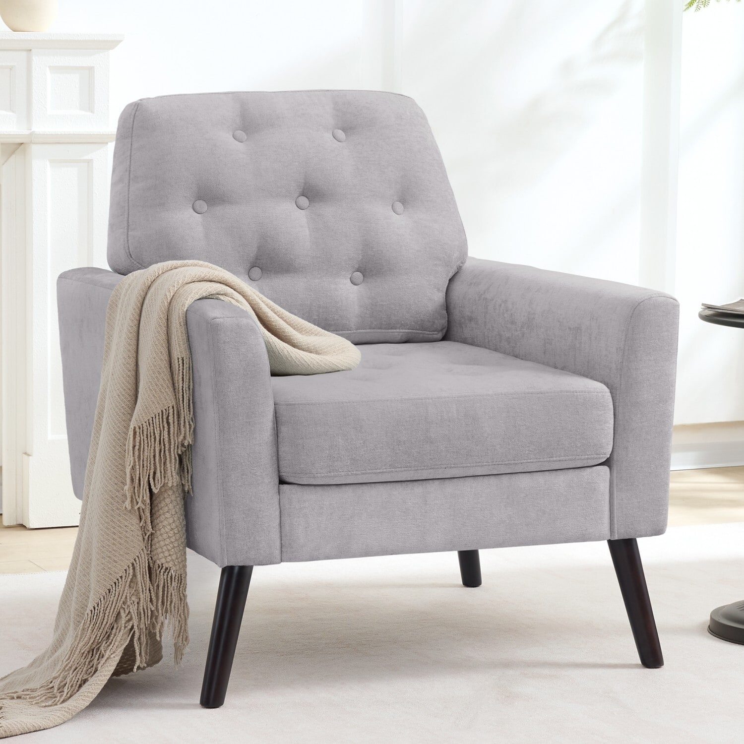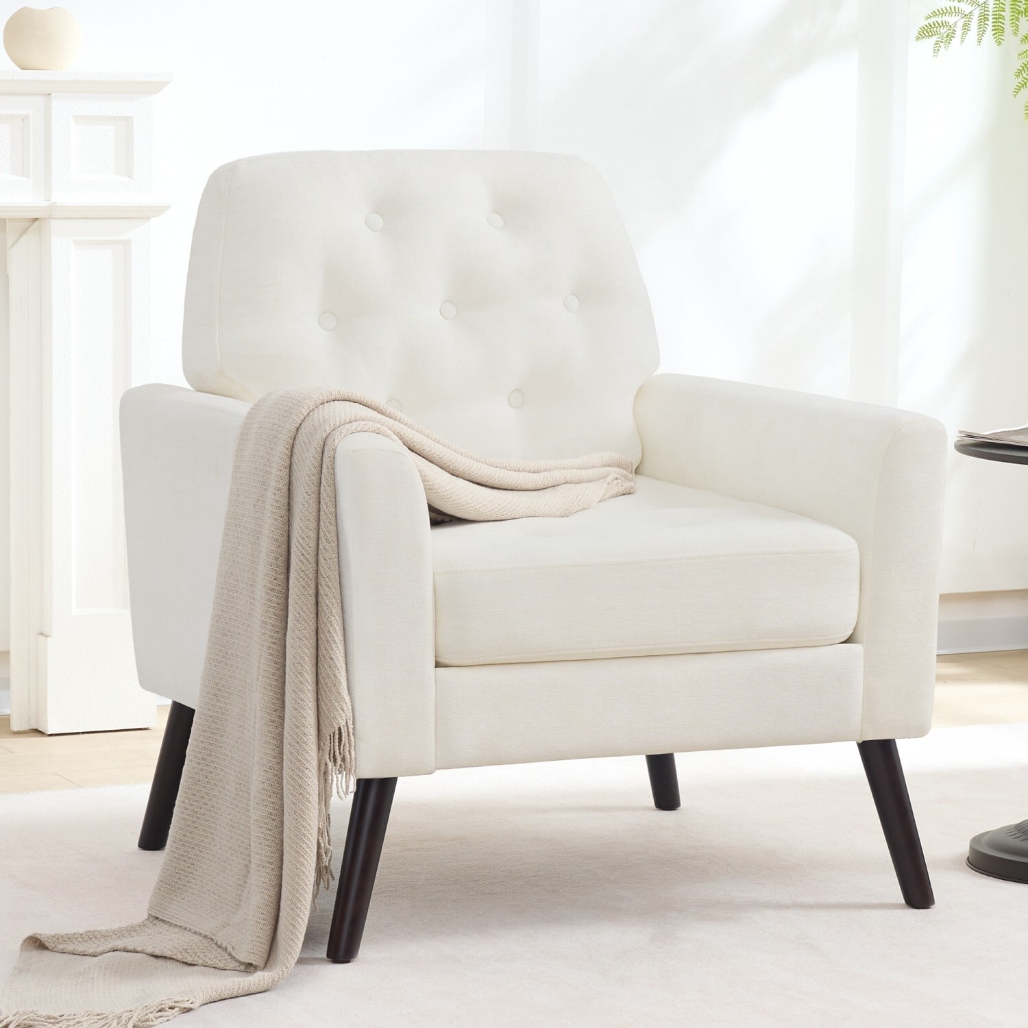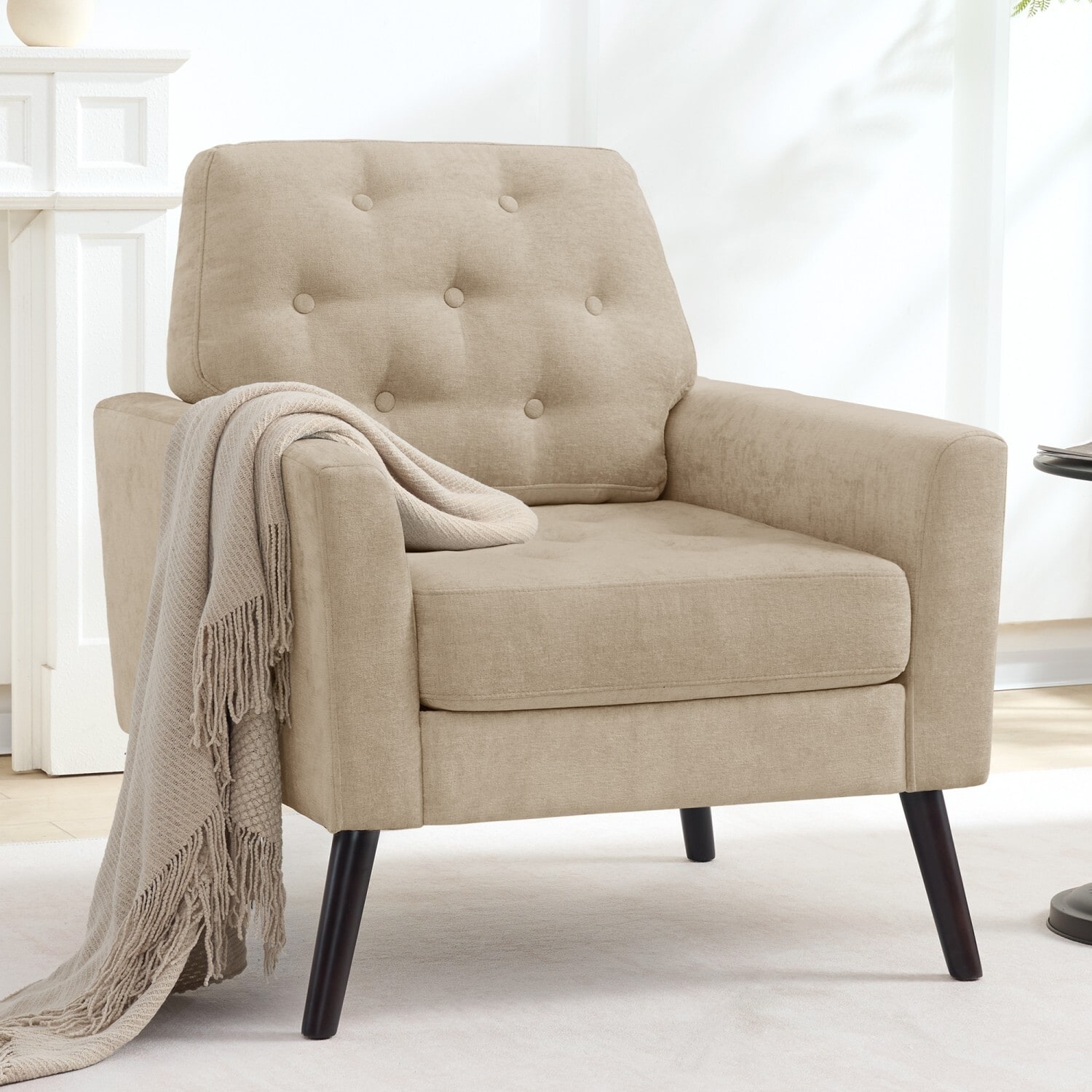 HOMYKA Century Modern Accent Chair—Comfortable Upholstered Living Room Chair with Button-Tufted Design