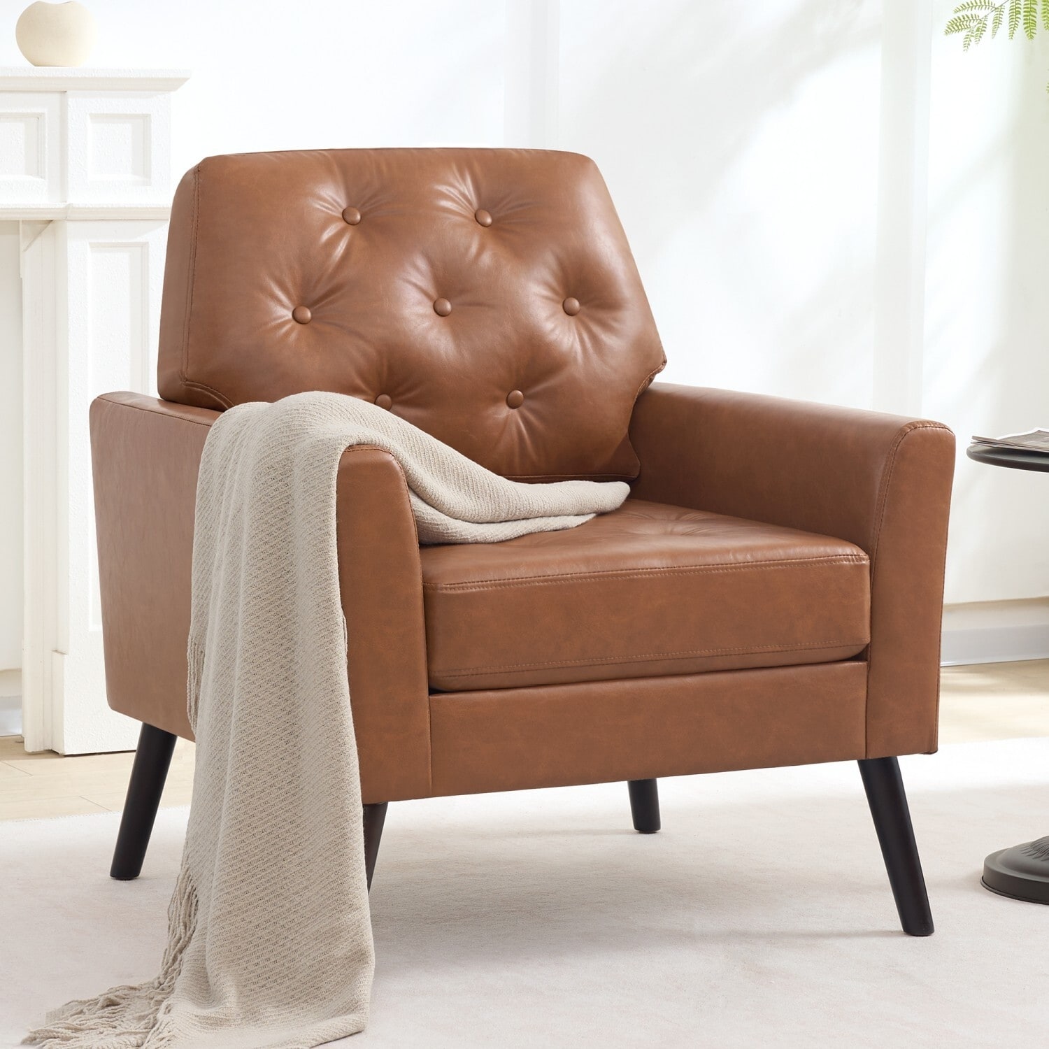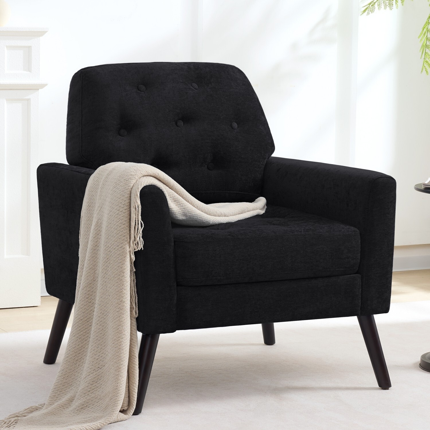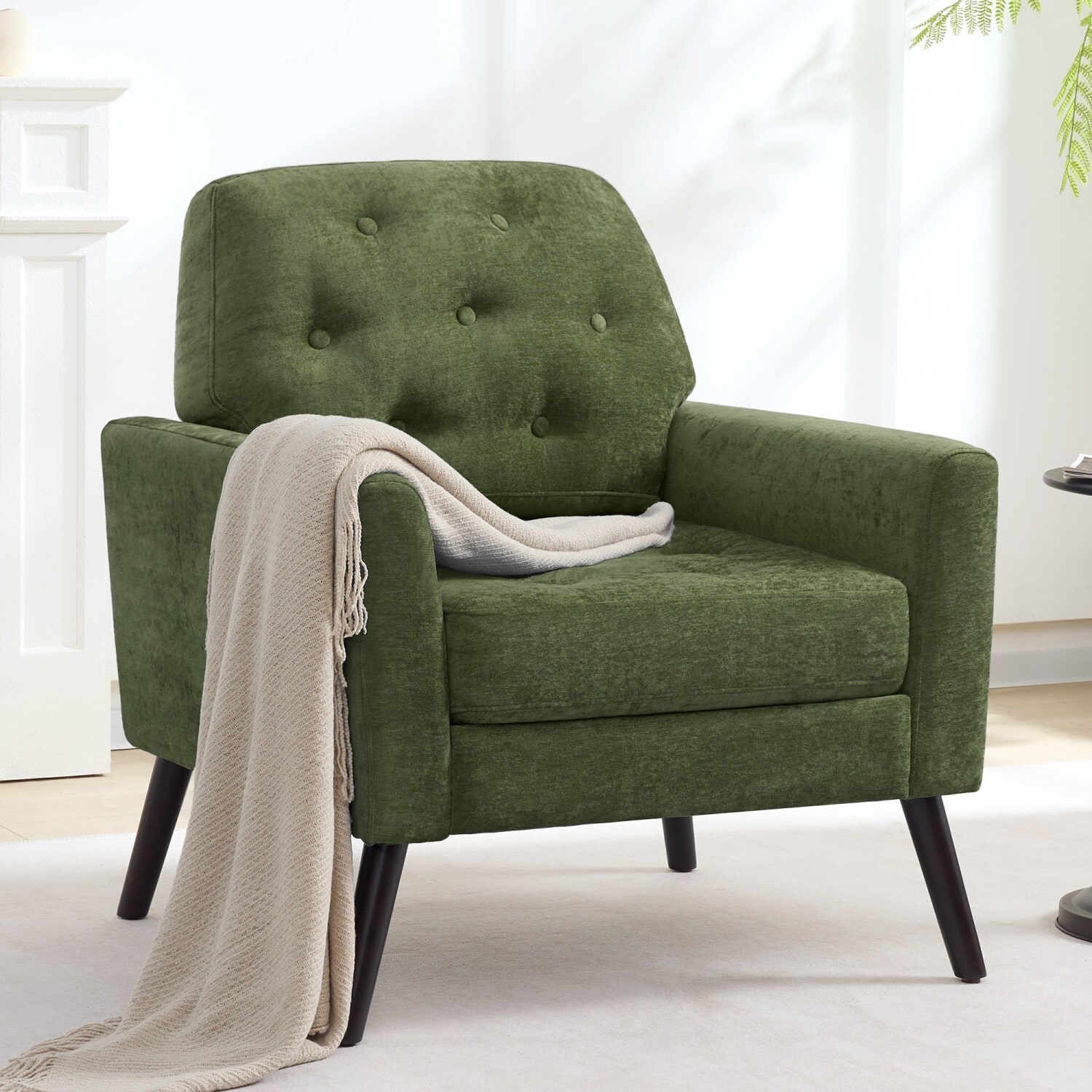 HOMYKA Century Modern Accent Chair—Comfortable Upholstered Living Room Chair with Button-Tufted Design