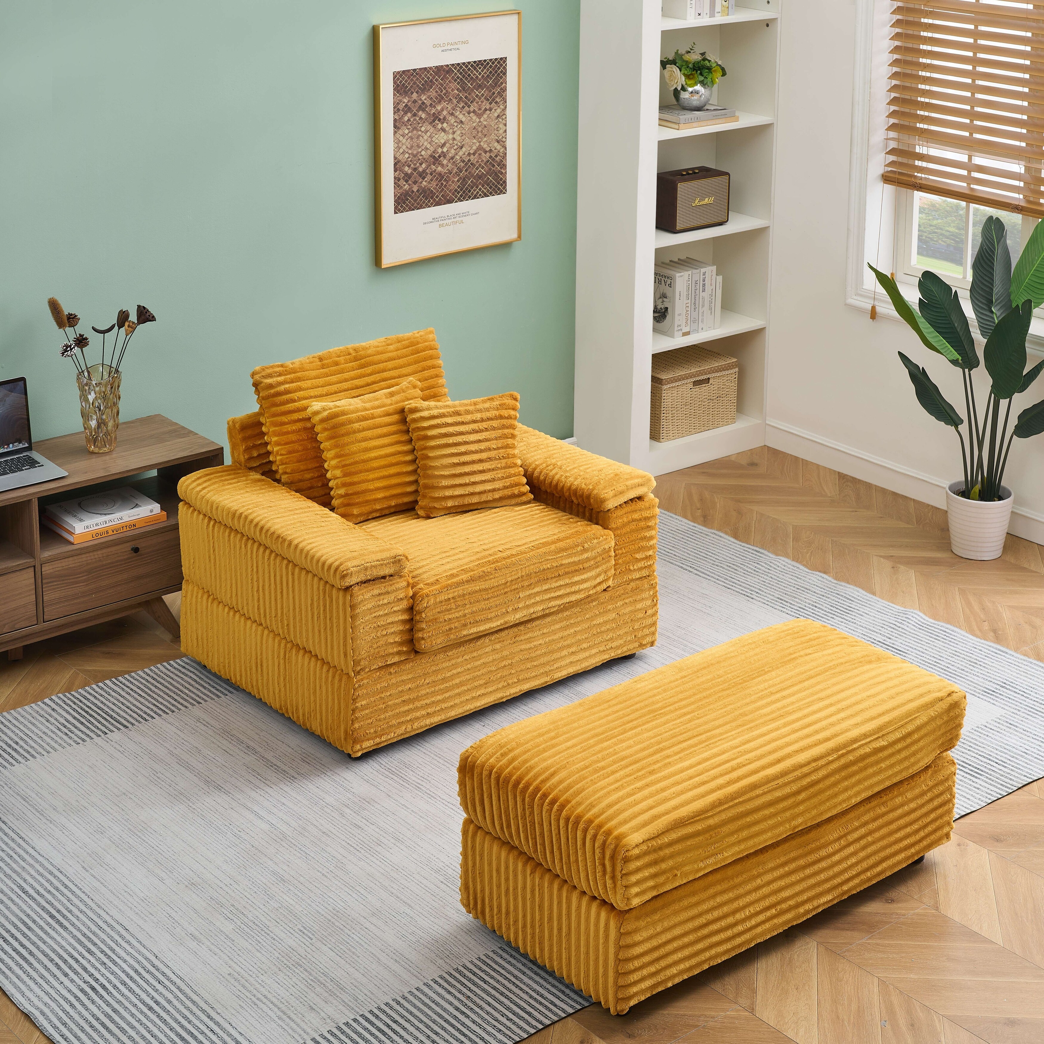 54.3" extra large cloud modular sofa, corduroy fabric super thick armrests, single chair/single chair + Ottoman