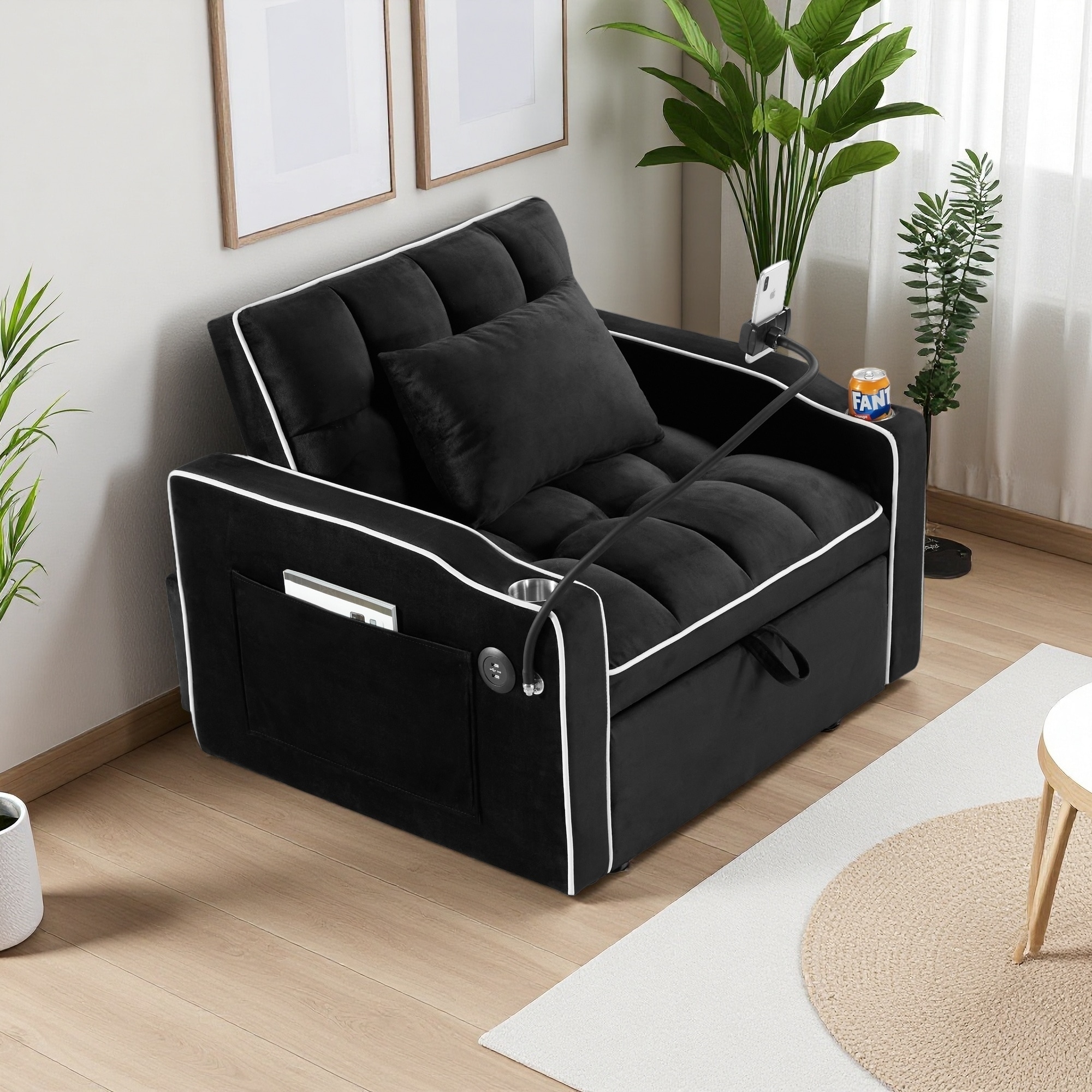 Convertible Sleeper Chair Bed with Pull-Out Design, Multi-Pockets, USB Port & 3-in-1 Function for Living Room