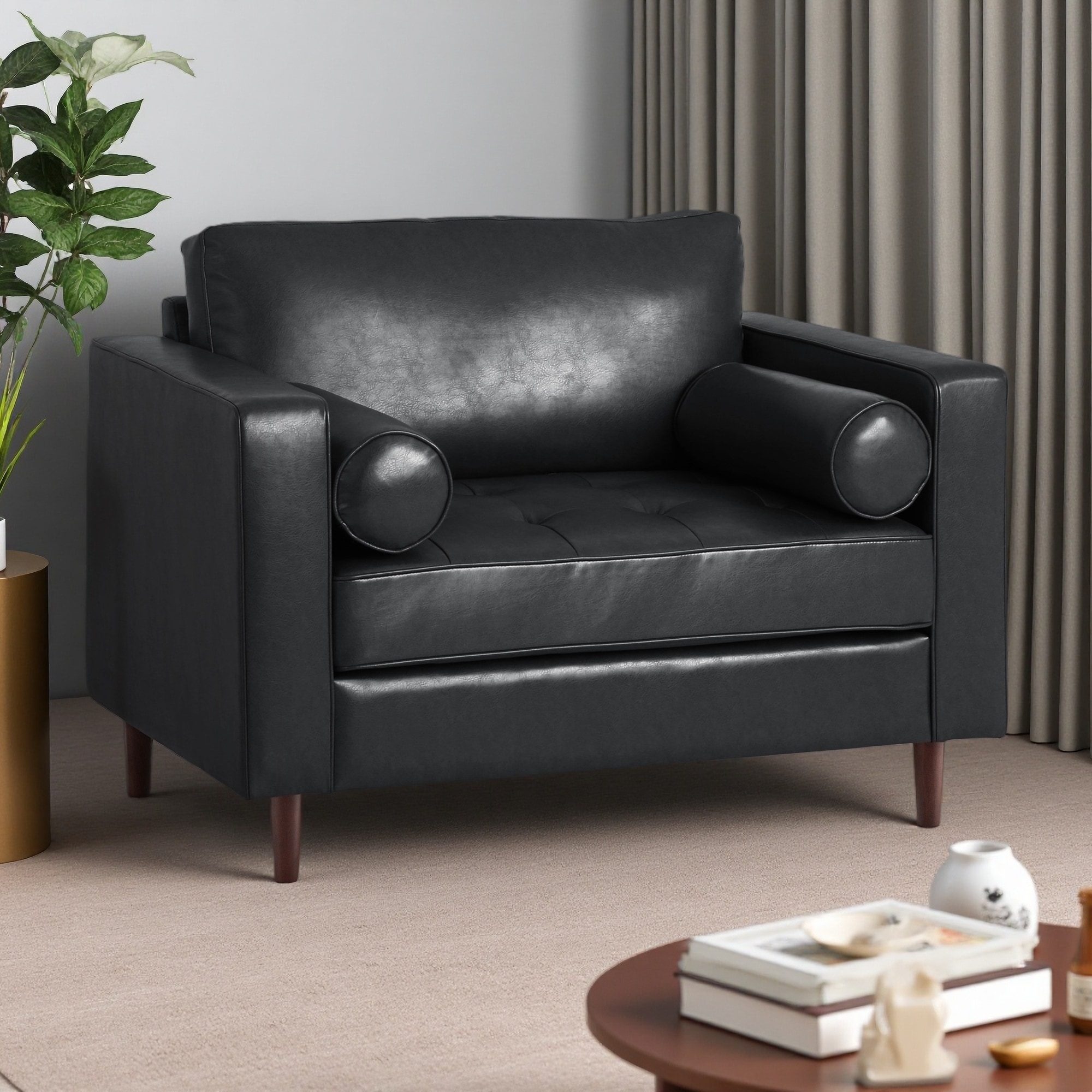 Faux Leather Club Chair with Comfortable Seat & Birch Legs