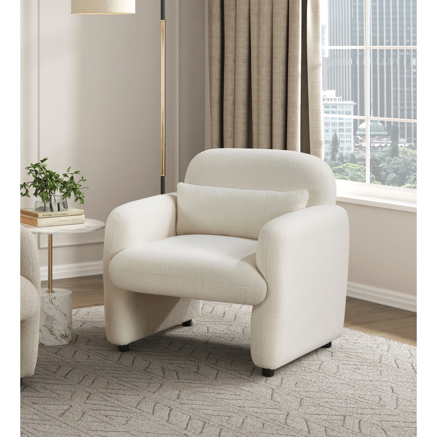 Contemporary Accent Chair Beige Boucle Fabric Upholstery Plywood Frame Pillow Cozy Living Room Furniture 1Pc Comfort Chair