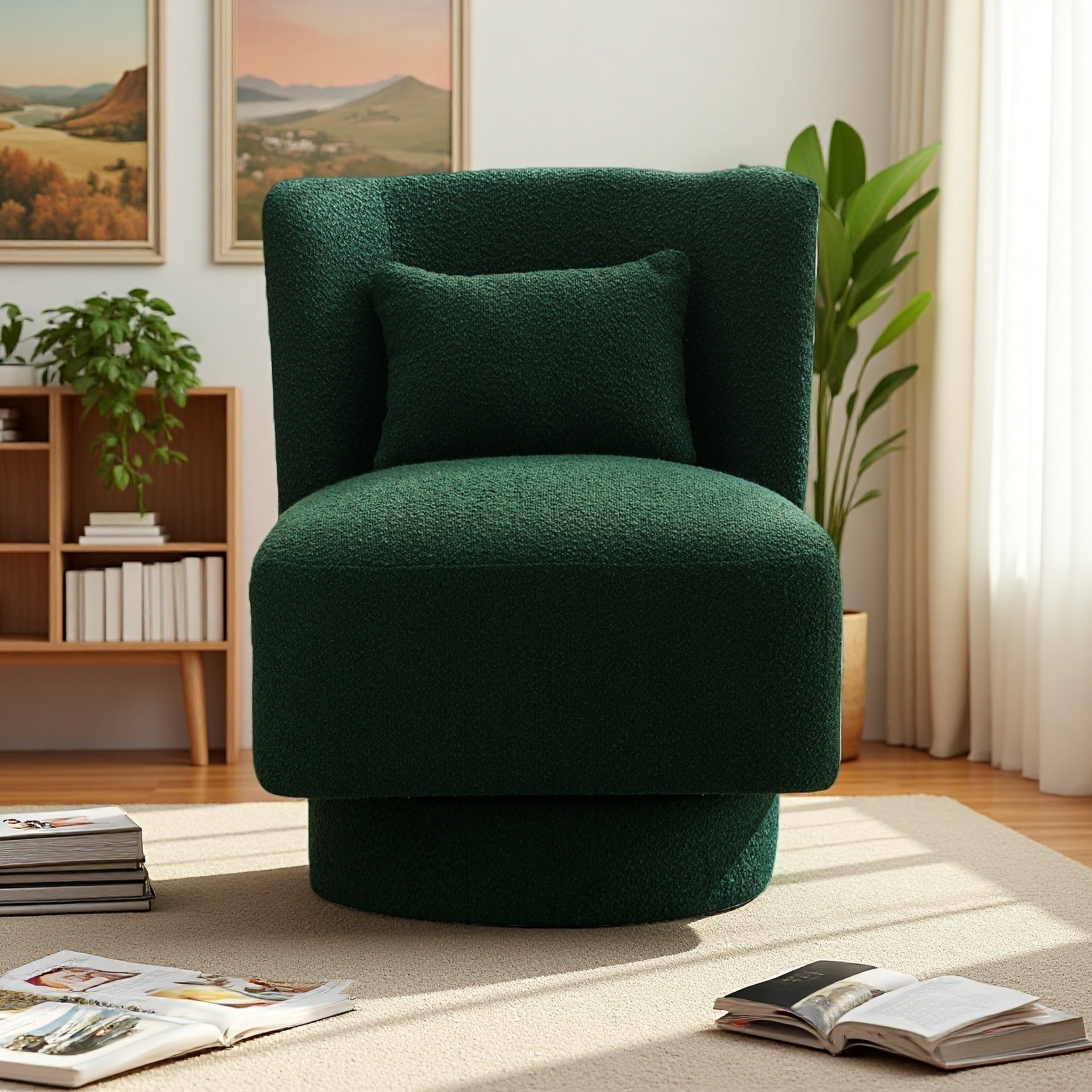 Boucle Swivel Accent Chair with 360-Degree Rotation and Pillow Included