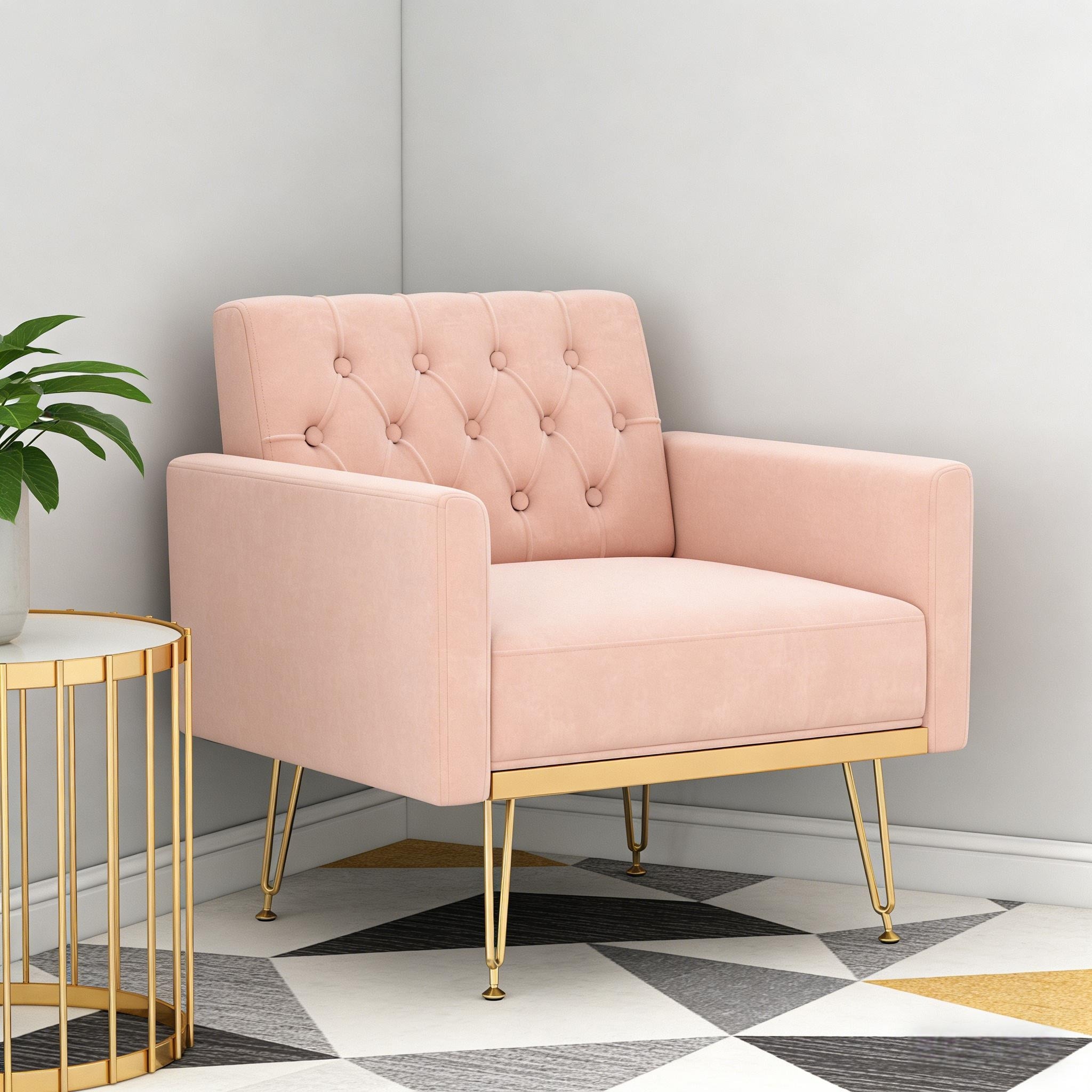 Accent Chair Velvet Upholstered Arm Chairs, Modern Reading Single Sofa Side Chair with Tufted Back and Gold Legs