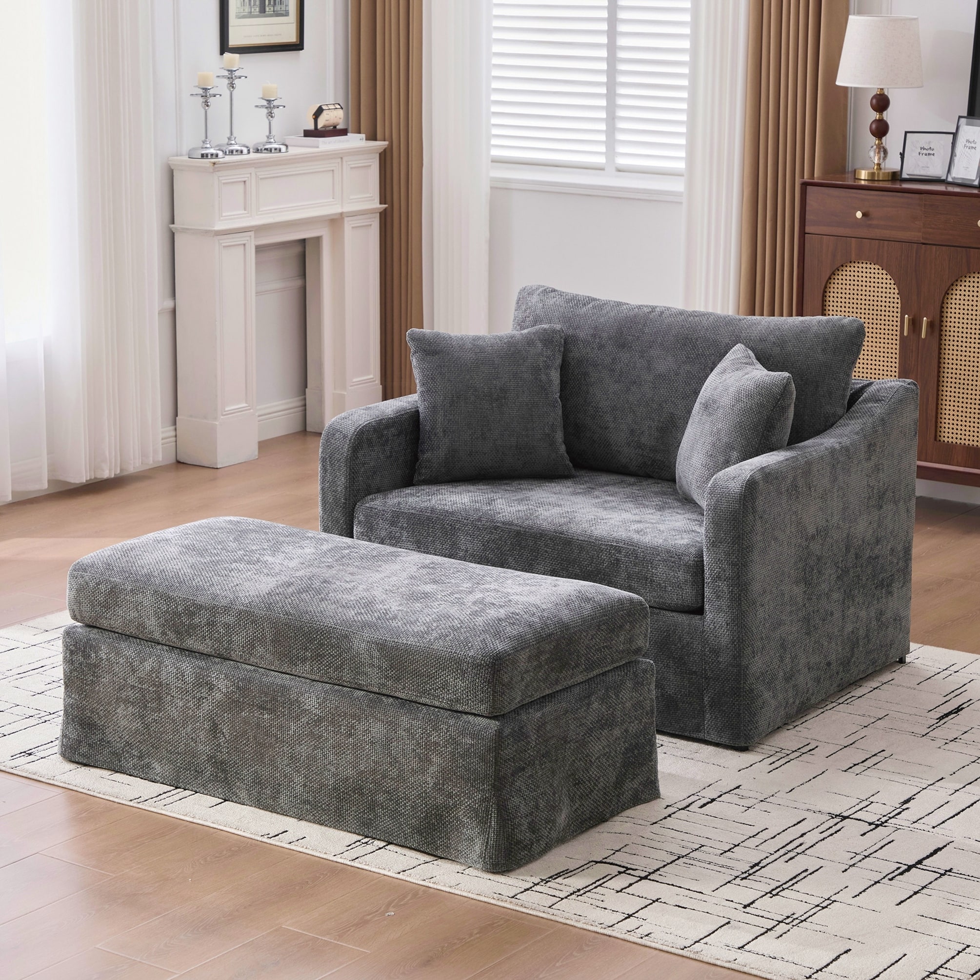 Modern Upholstered Farmhouse Performance Accent Chair with Ottoman