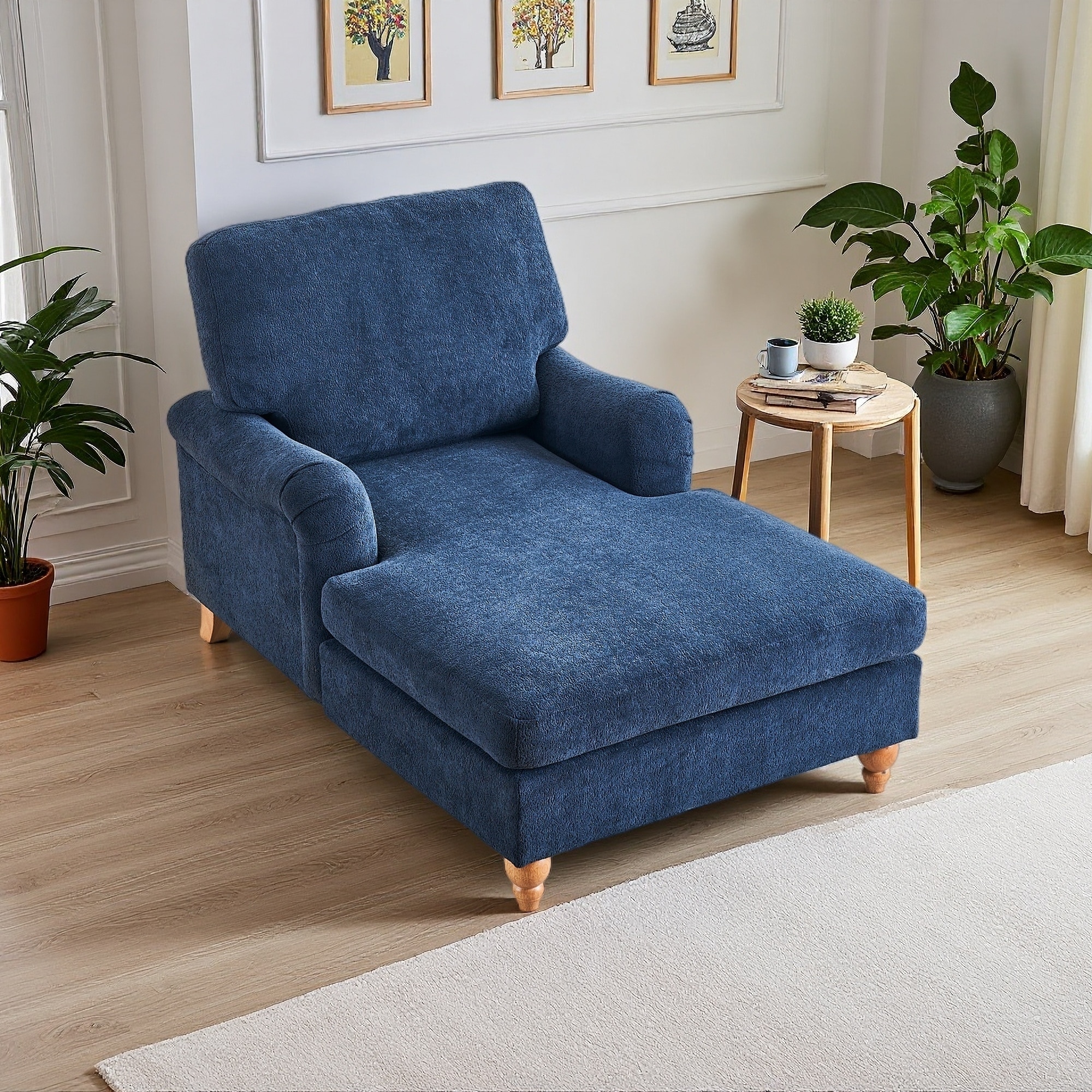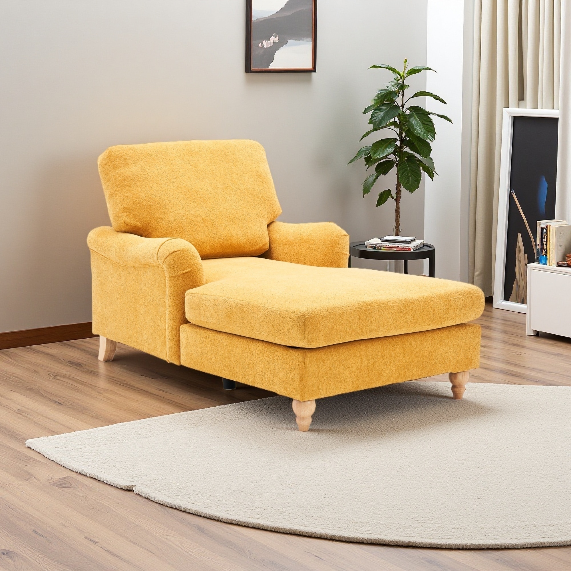 37.4"W Chenille Oversized Chaise Lounge Chair, Mid-Century Sleeper with Solid Wood Legs & Removable Cushion