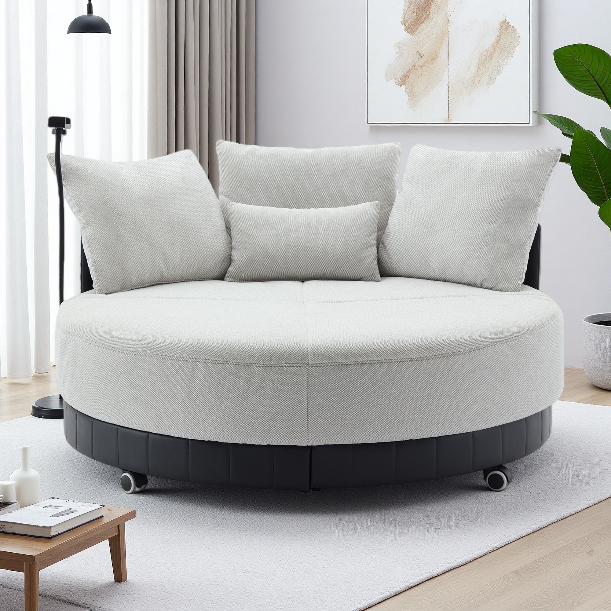 25.2 "Wide Modern Chenille Cushioned Armless Metal Base 360° Swivel Chair with Pillow, Lounge Area
