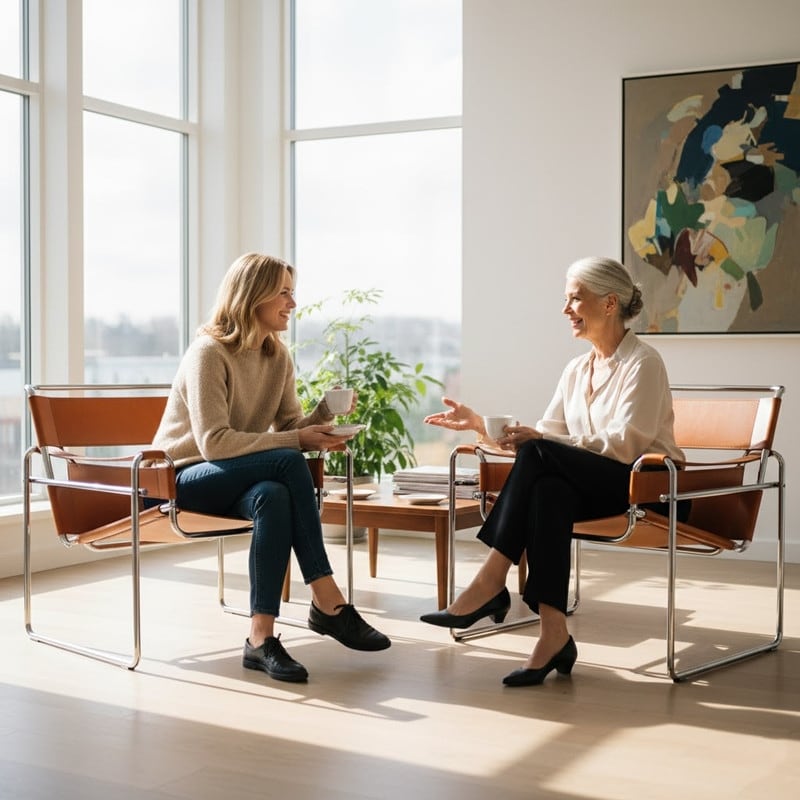 Momei Mid-Century Modern Saddle Leather Accent Chair with Stainless Steel Chair Leg