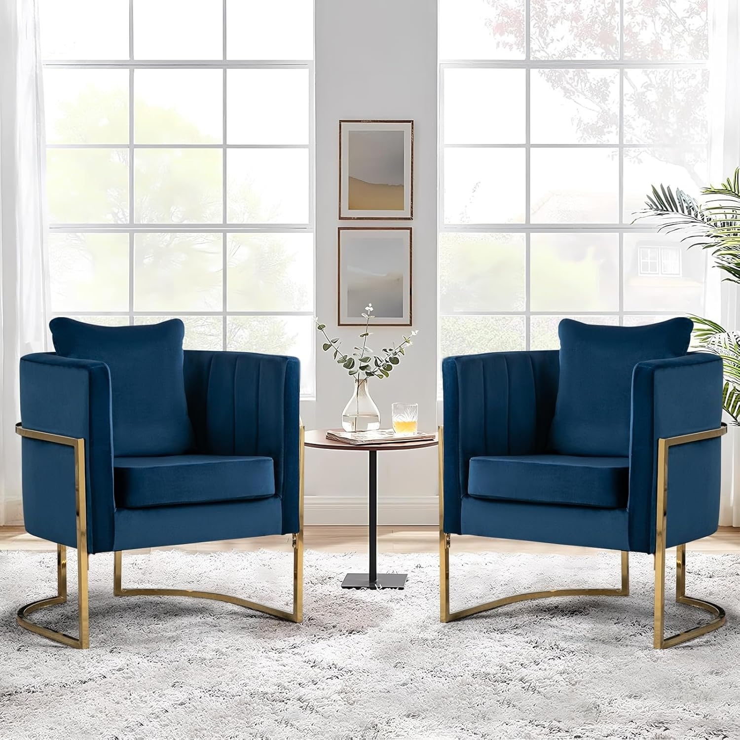 Set of 2 Velvet Accent Chairs with Gold Metal Legs, Blue