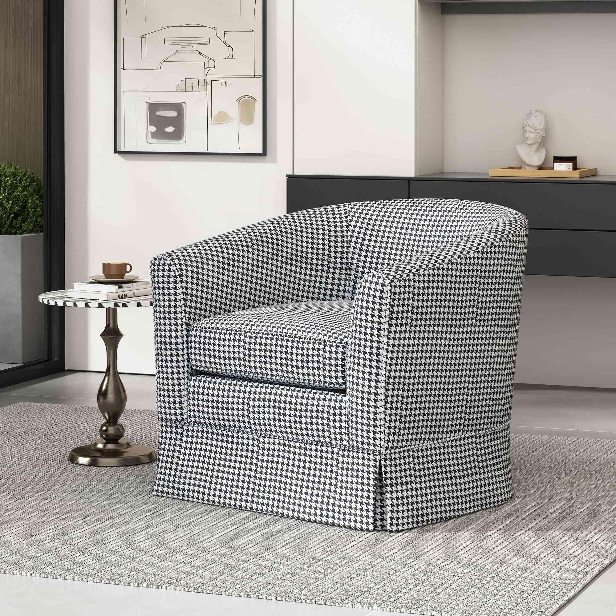 29.92'' Swivel Accent Chair, Upholstered Skirted Swivel Chair with Removable Back Cushion, 360 Degree Comfy Armchair