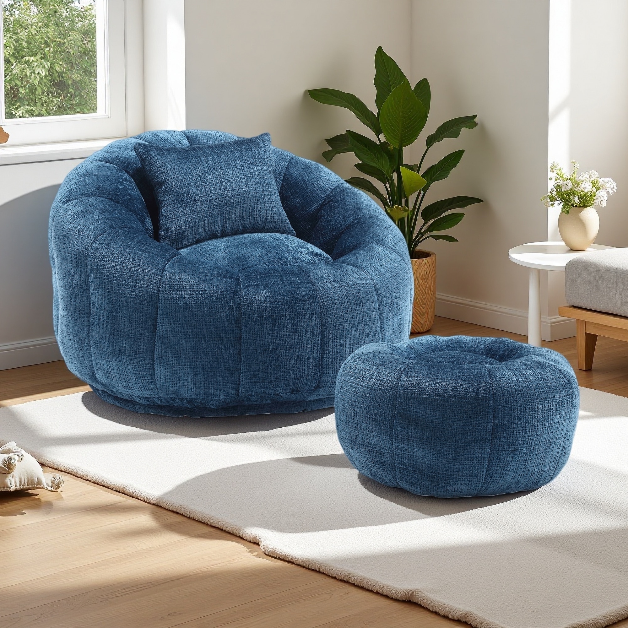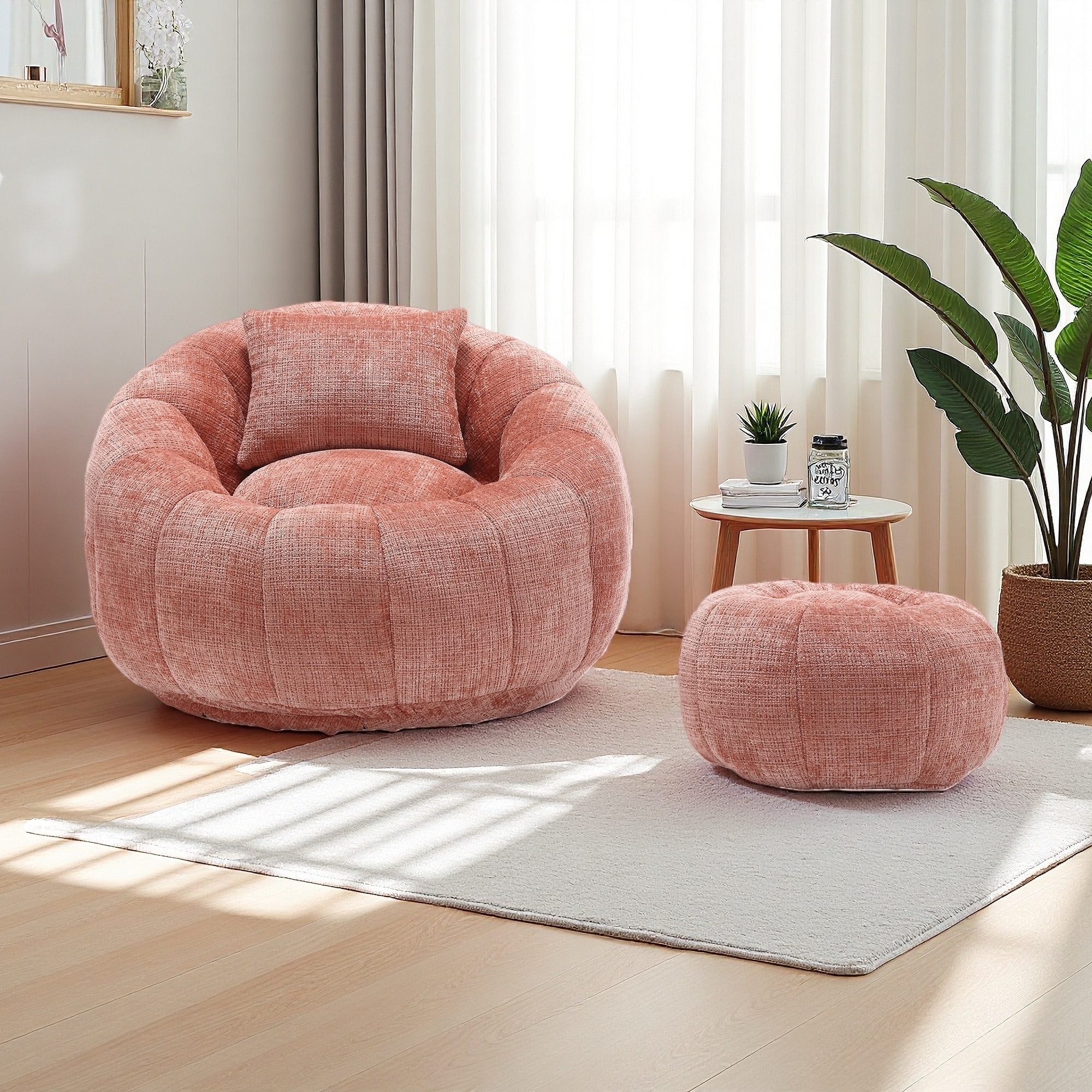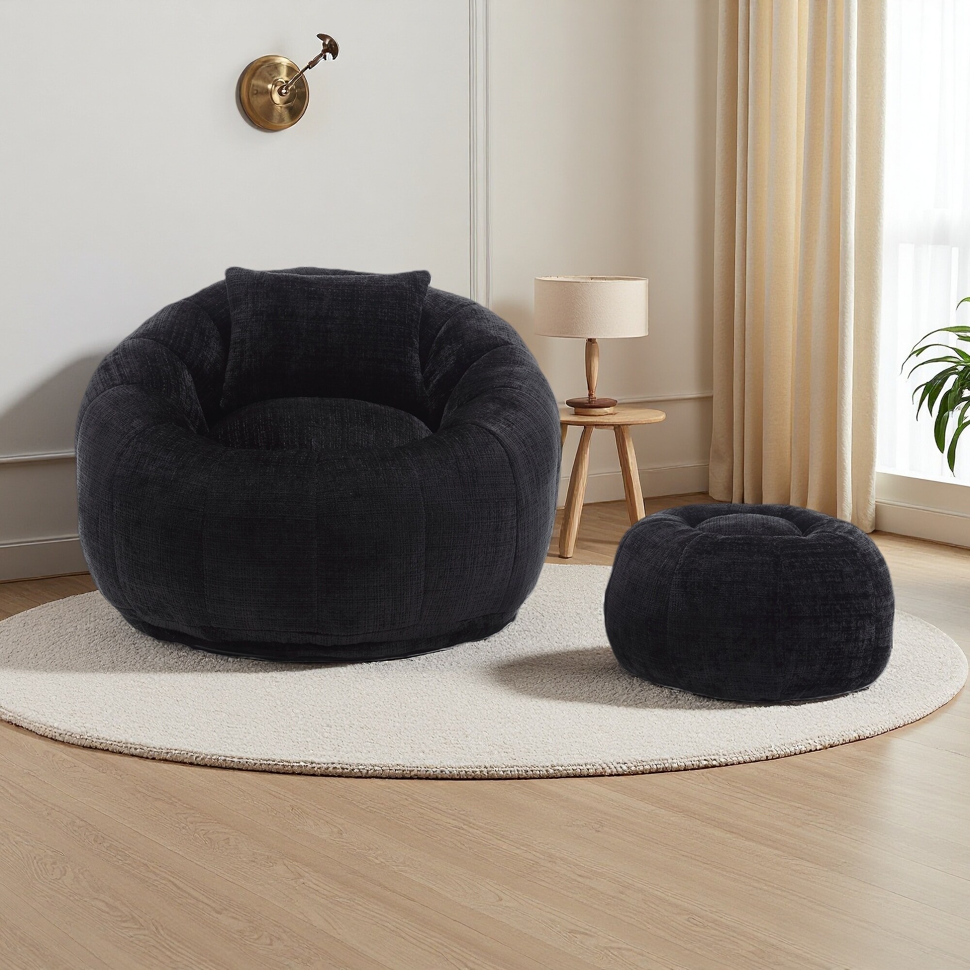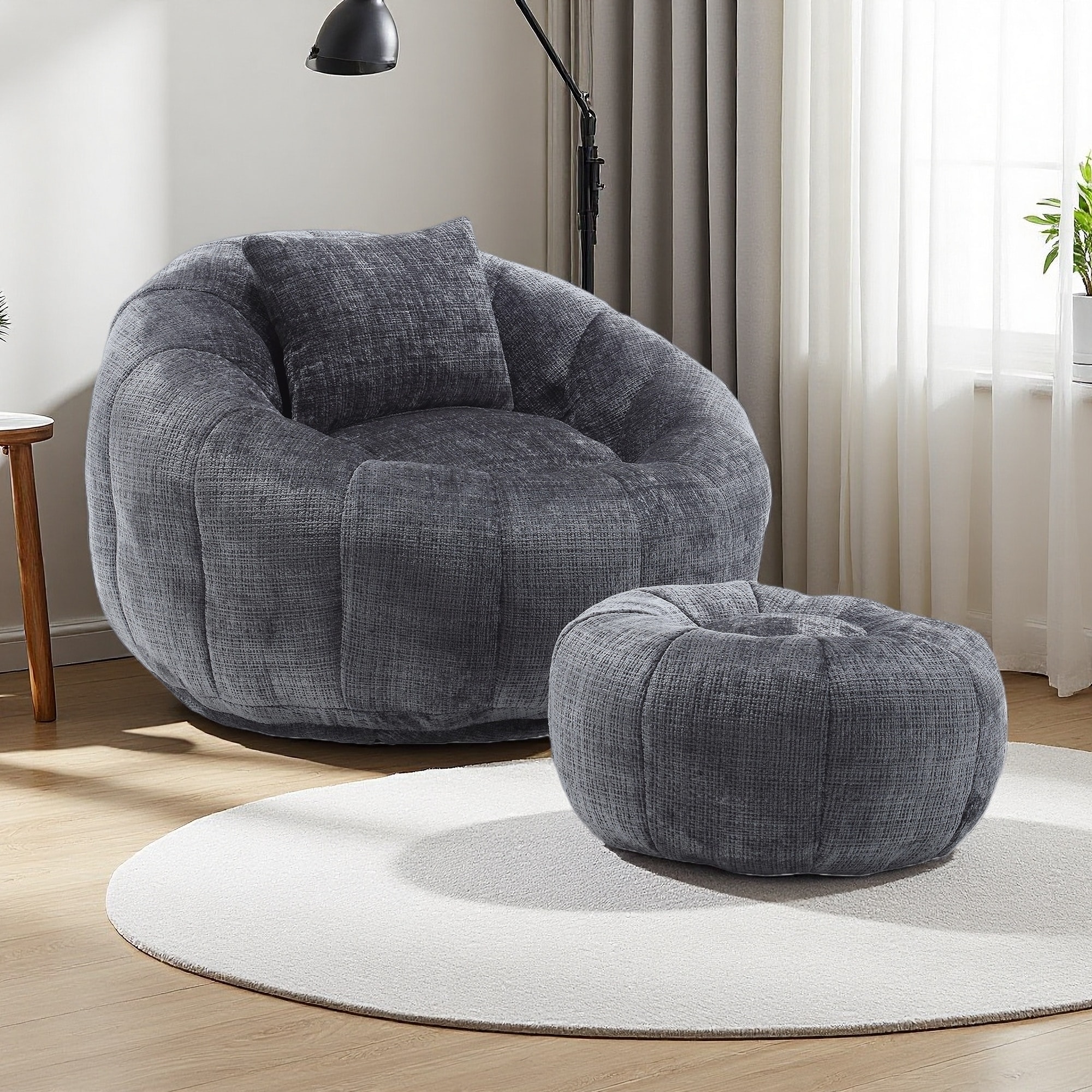 Chenille Round Bean Bag Chair & Ottoman Sets with Ottoman and Pillow