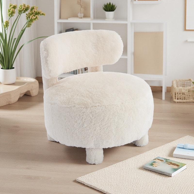 Fur Accent Chair with Curved Backrest & Solid Wood Legs