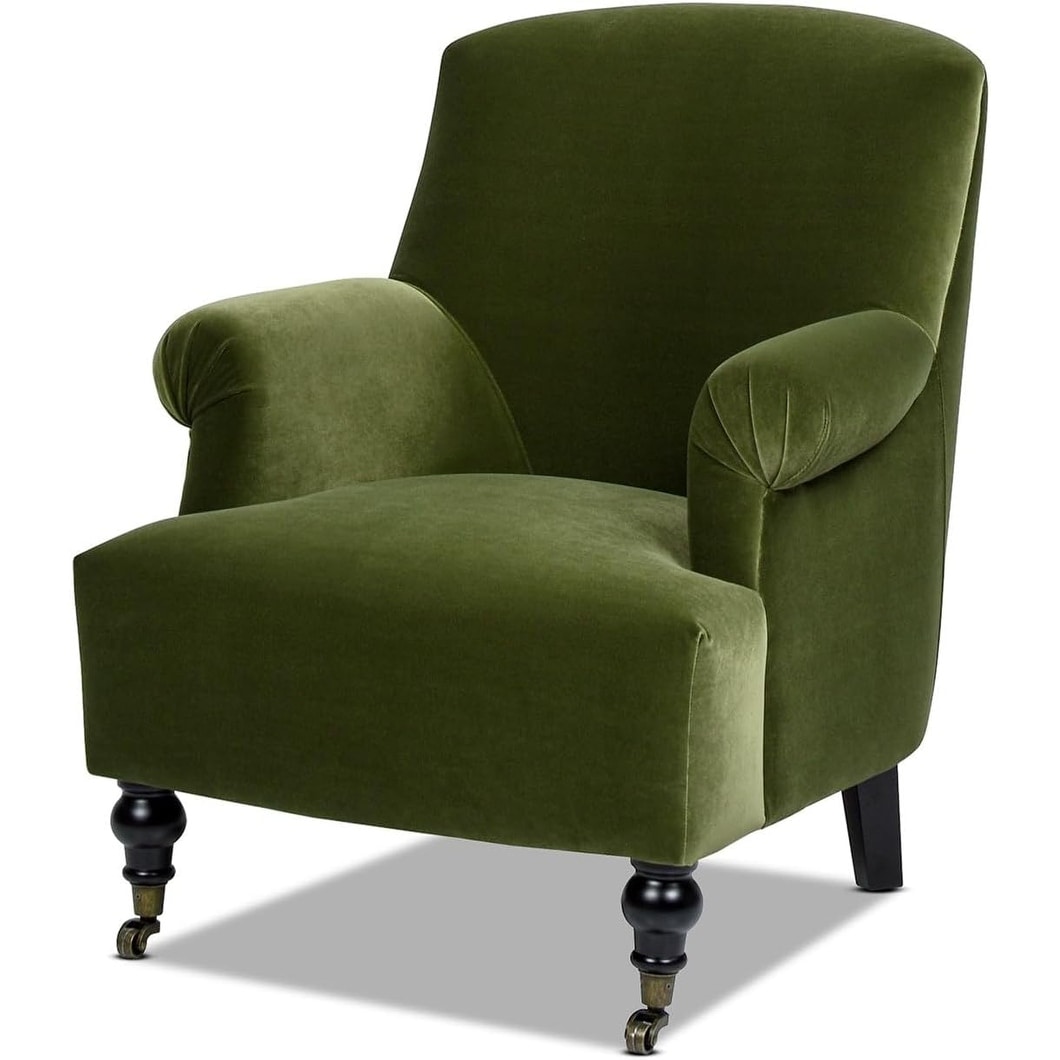 Eloise Farmhouse Coastal Pleated Sock Living Room Accent Arm Chair, Olive Green Performance Velvet