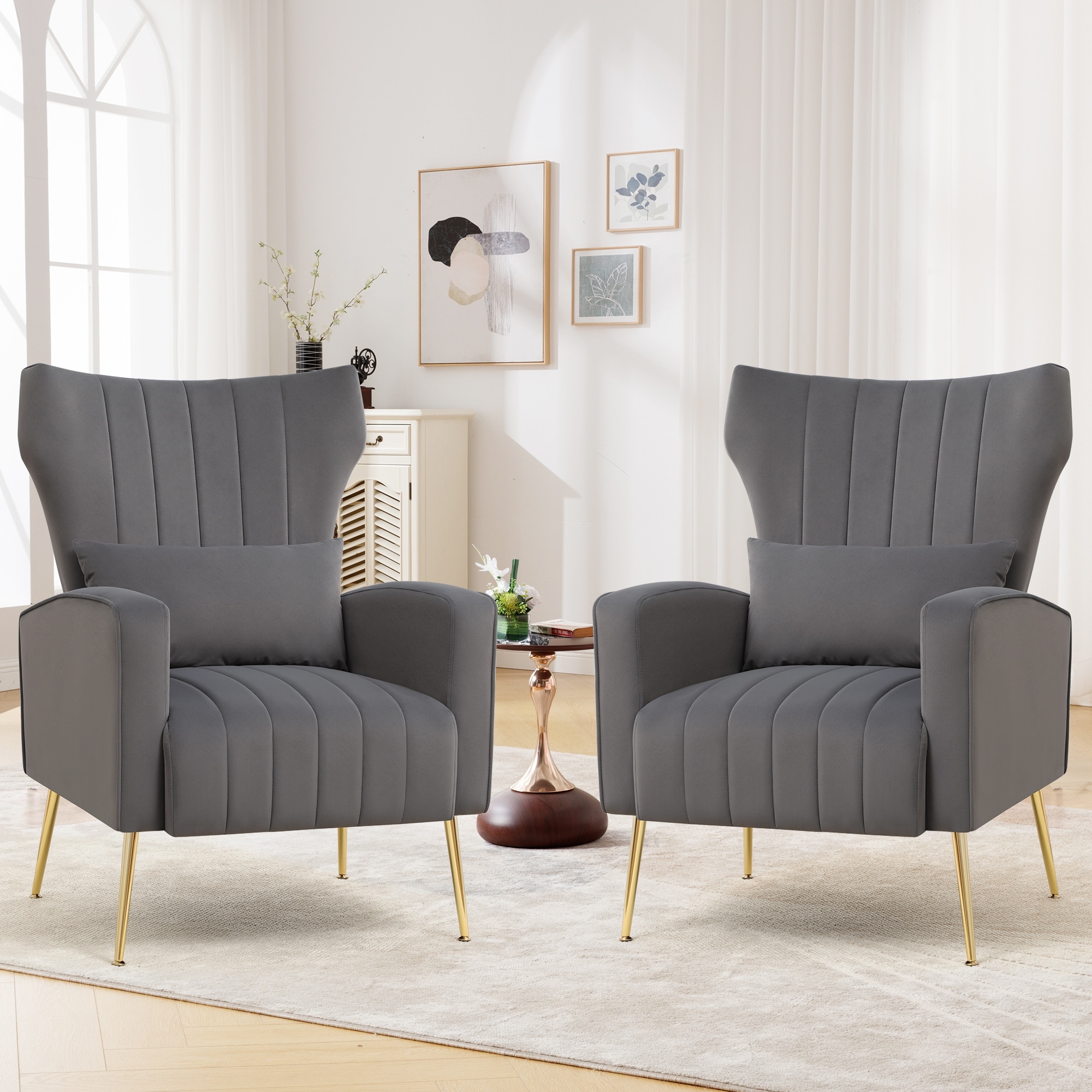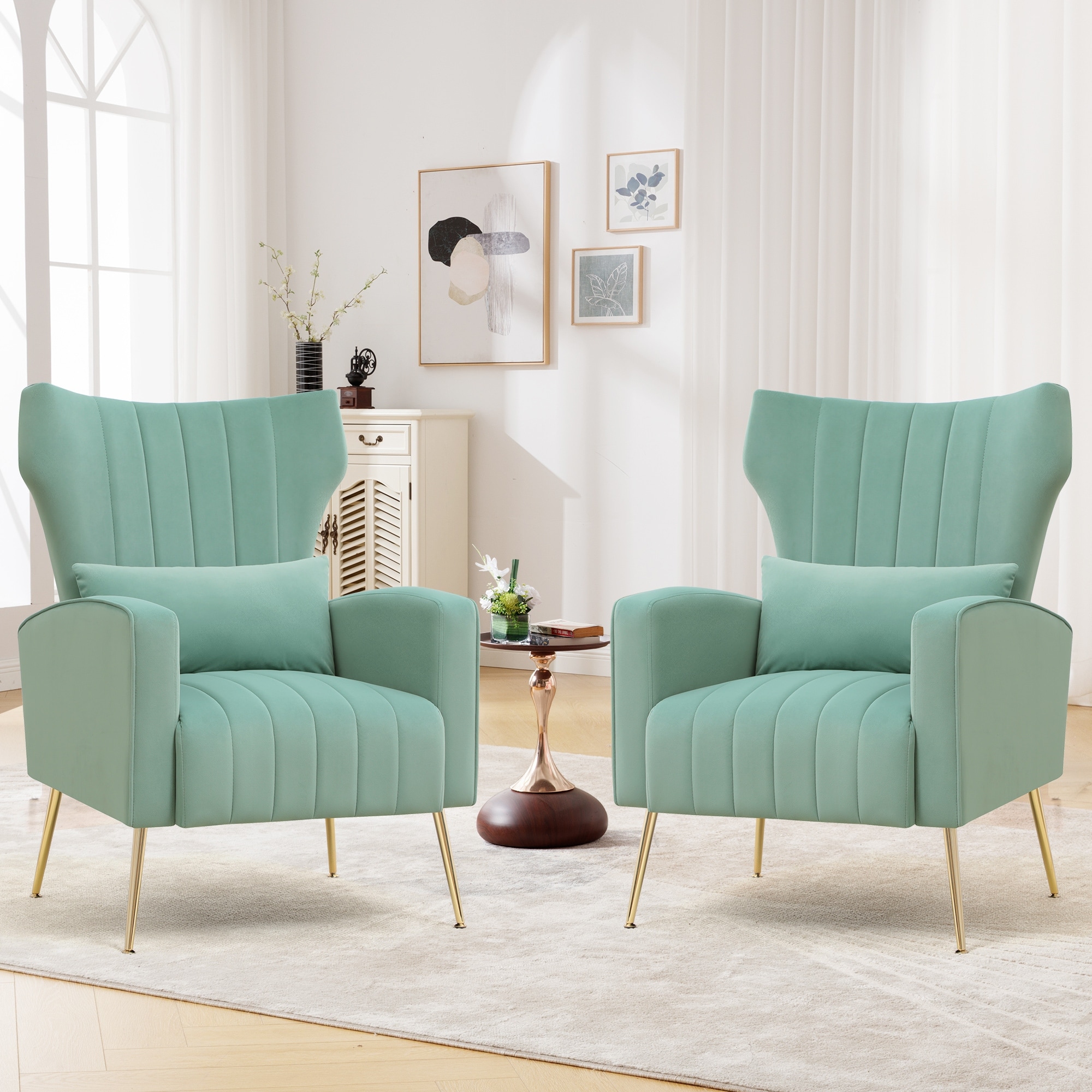 HOMYKA Accent Chair Upholstered Velvet Wingback Armchair Set of 2