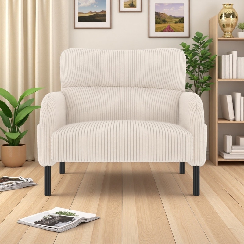 Corduroy Wide Seat Accent Chair with Side Pockets & Ergonomic Design