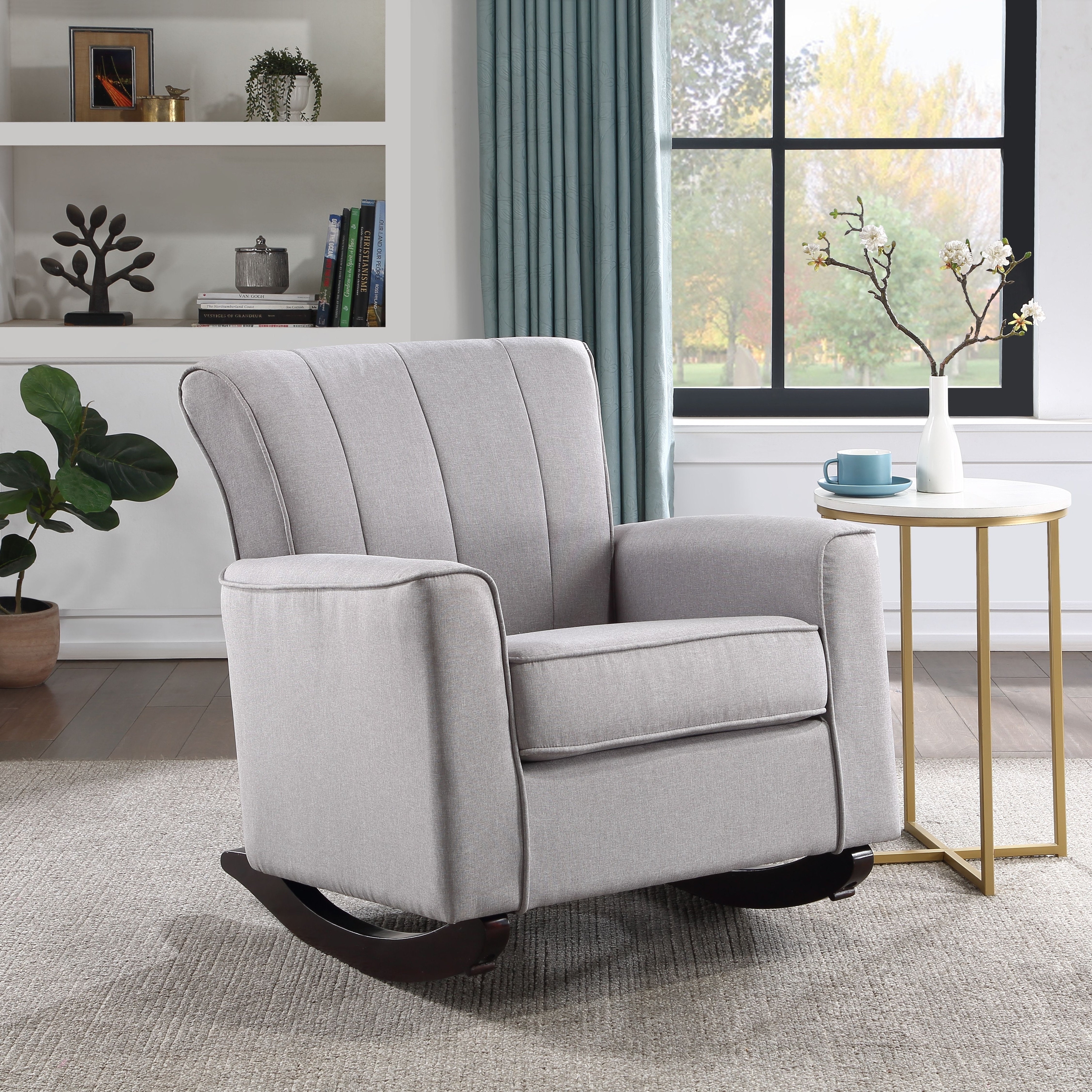 Light Gray Linen Rocking Chair Constructed of solid hardwood,Beautifully designed with wide seat and armrest