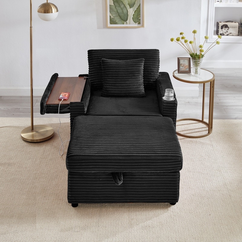Corduroy sofa with storage, USB port, Ottoman and tabletop